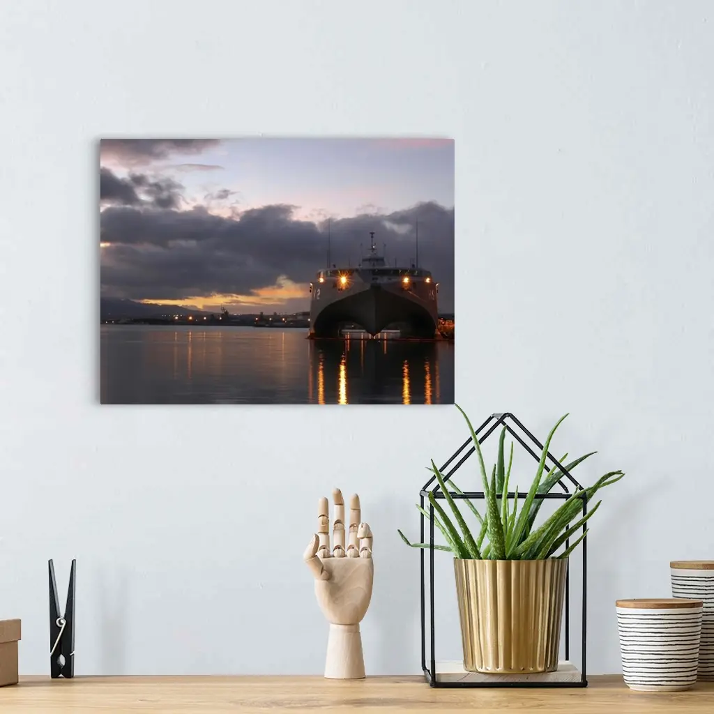 Swift High Speed Vessel 2 HSV2 sits moored in Pearl Harbor wall art for home and office decor. Discover canvas art prints, photos, mural, big canvas art and framed wall art in GreatBigCanvas.com's varied collections.