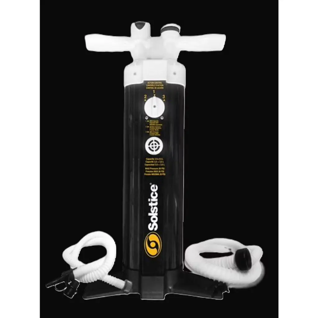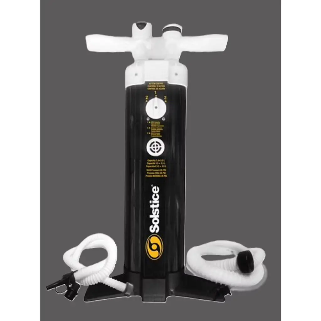 This Sup pump with triple action helps you to maximize your time and energy on the water. This pump comes with seals and an anti-sand filter for extended life and usage of the pump and isup. This comes complete with a shockproof gauge meter and works with all standard H3 valves and it includes a second hose for low-pressure inflatables. Using this is a big help and allows more time with family and friends. Product Features: 2 Hoses Triple Action Sup Pump With Gauge Seals and anti-sand filter for long life of pump and isup Compact design has an extra long body and high-airflow piston for easier inflation Triple action hand pump Dimensions: 15" H x 10" W x 10" D Material(s): vinyl