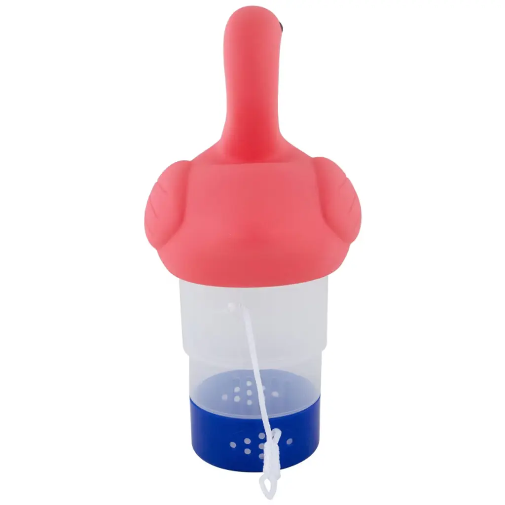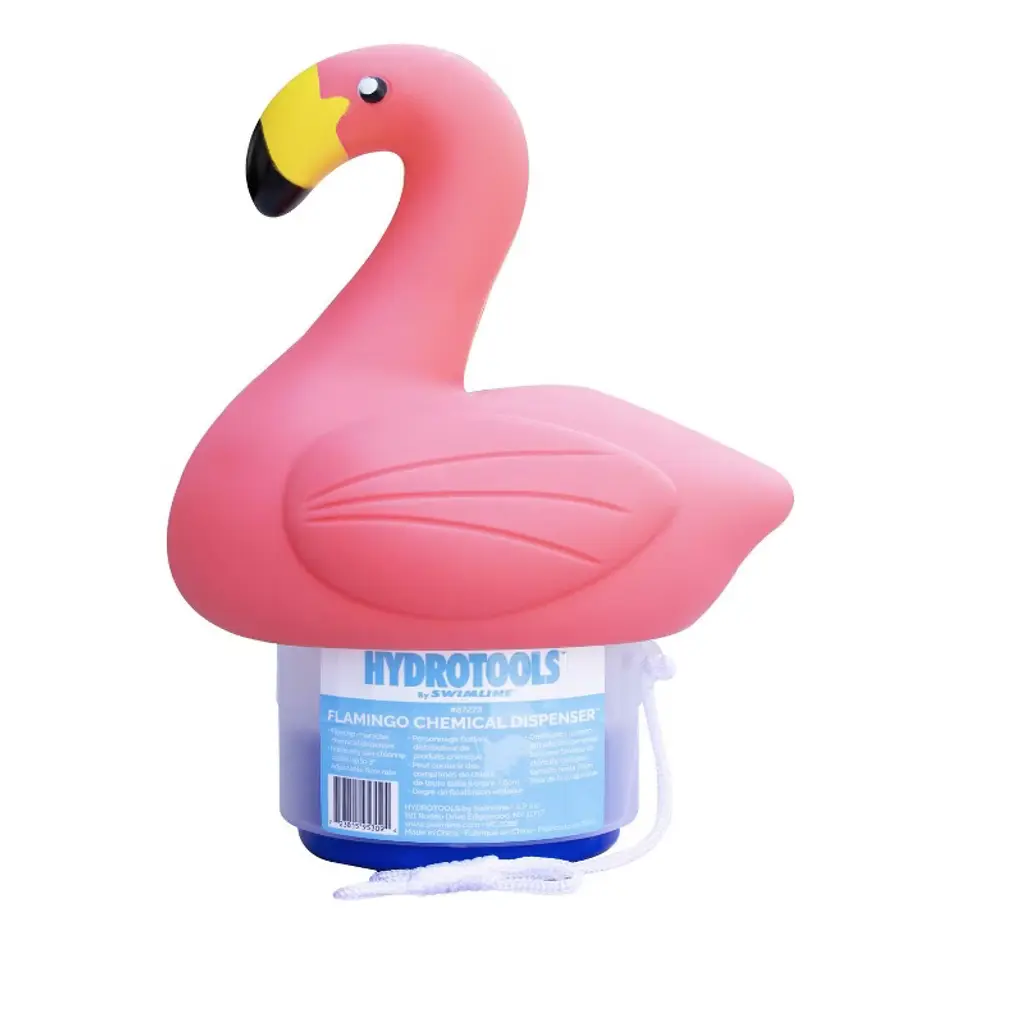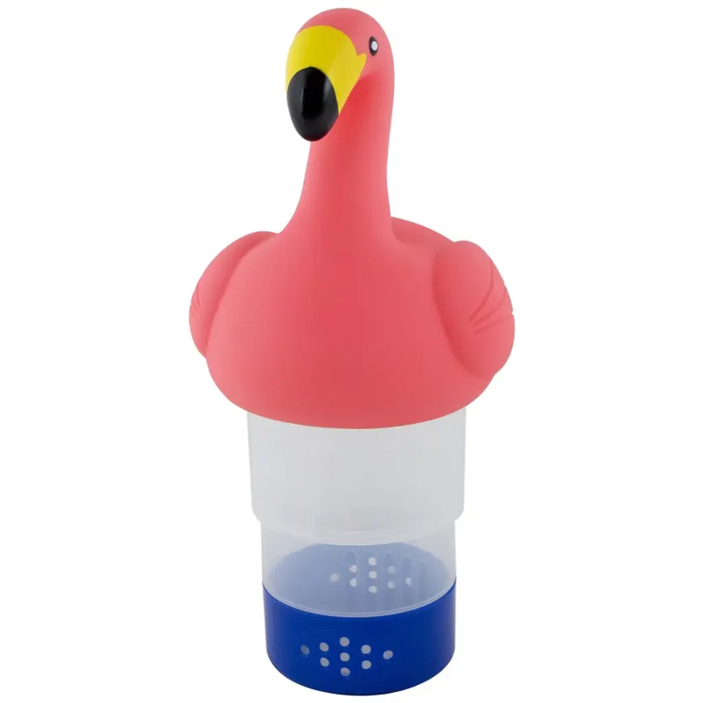 This pink flamingo chlorine pool dispenser is the perfect addition to any pool owner's arsenal. Not only does it keep your pool sparkling clean by dispensing chlorine tablets, but it also adds a touch of fun with its quirky pink flamingo design. This dispenser is designed to last season after season. Simply fill it with your favorite chlorine tablets and let it float around your pool, maintaining the perfect chlorine levels and keeping your pool crystal clear. Whether you're lounging poolside or taking a dip, this playful accessory will bring a smile to your face. Product Features: Swimming pool chemical dispenser Features a pink flamingo Holds up to (6) 3" chlorine or bromine tablets Adjustable chlorinating control on the bottom of the dispenser Expandable basket for chlorine tabs Suitable for all types of pools Chlorine is not included Dimensions: 12"H x 5"W x 6.5"D Material(s): plastic