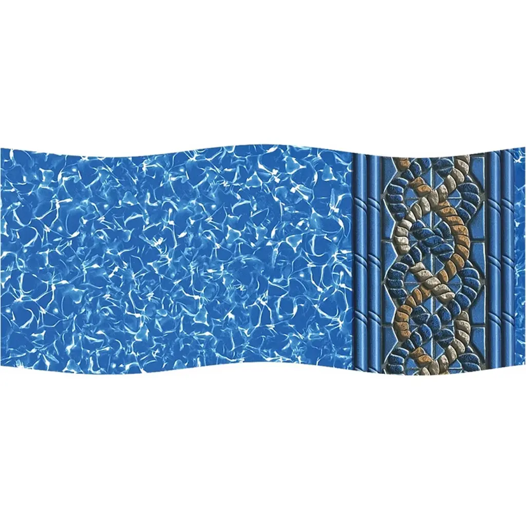 This above ground pool liner is designed to be used as either a standard beaded or J-Hook liner. This uni-bead above ground pool liners are made to last long. Whether it's design, pattern, or fit, these quality liners are unbeatable. They are assured of keeping your above ground pool in touch with the latest style. Product Features: Helps to keep the decorative tile graphics straight and uniform Design has a blue and gold triple helix twist near the top with a swirling blue pattern below Extra heavy-duty virgin vinyl is fade resistant and uses UV protected printing inks Lamiclear acrylic top coat provides years of protection against chemicals and abrasion Resists sunlight, bacteria, and fungus Fits flat bottom above ground pools with 52" sidewalls Each liner is computer cut and welded for a flawless fit and finish Made in the USA Includes a "Warning: No Diving! Shallow Water, you can be paralyzed!" safety sticker Dimensions: 21' long Material: vinyl