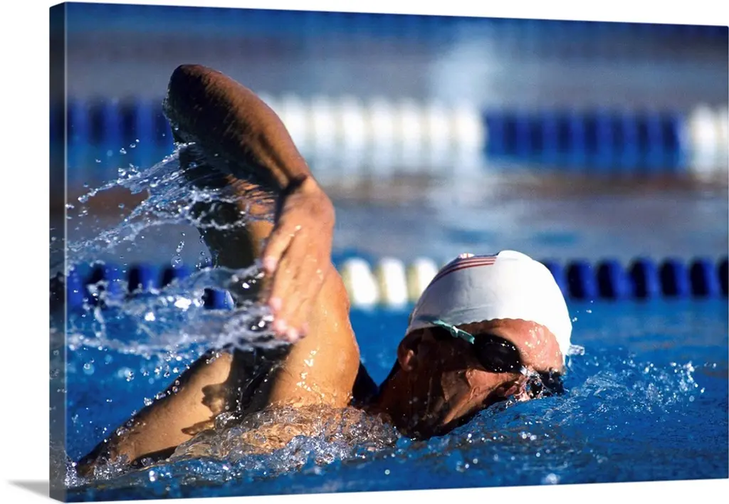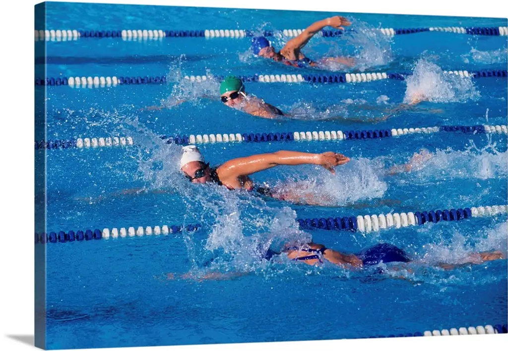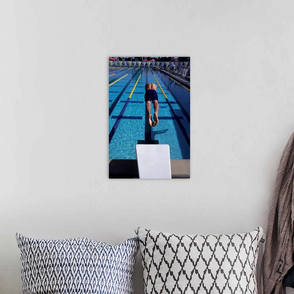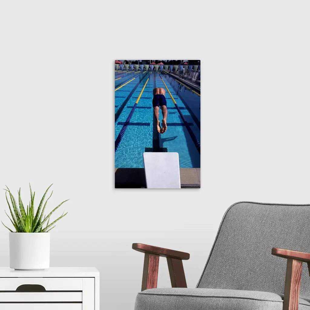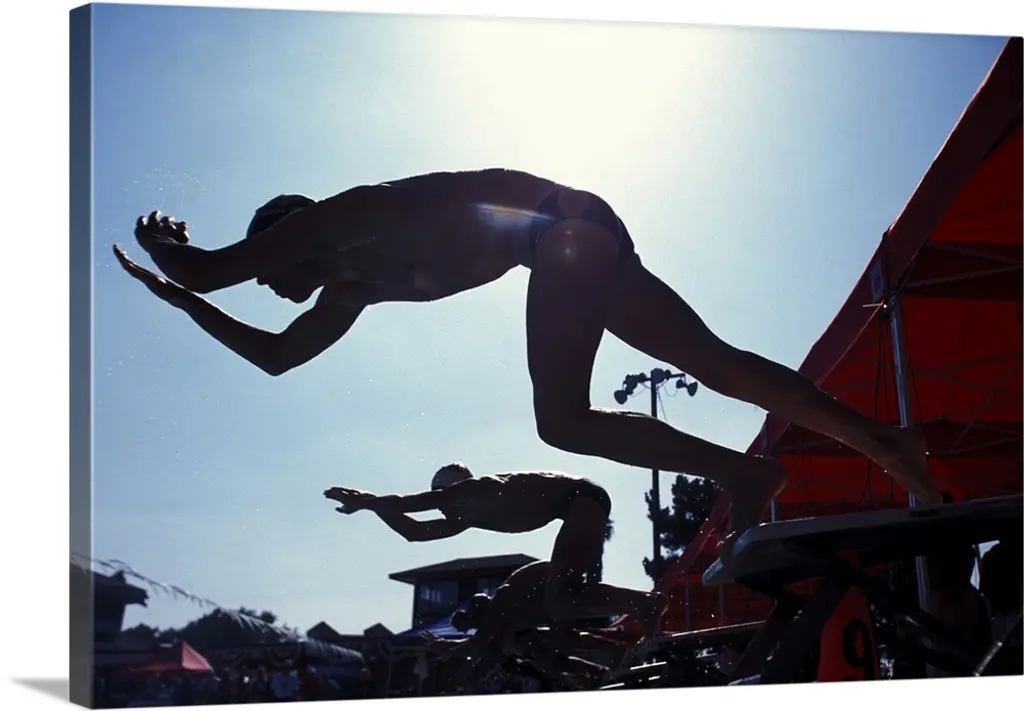 Swimmer Diving Off The Starting Blocks To Begin A Race
