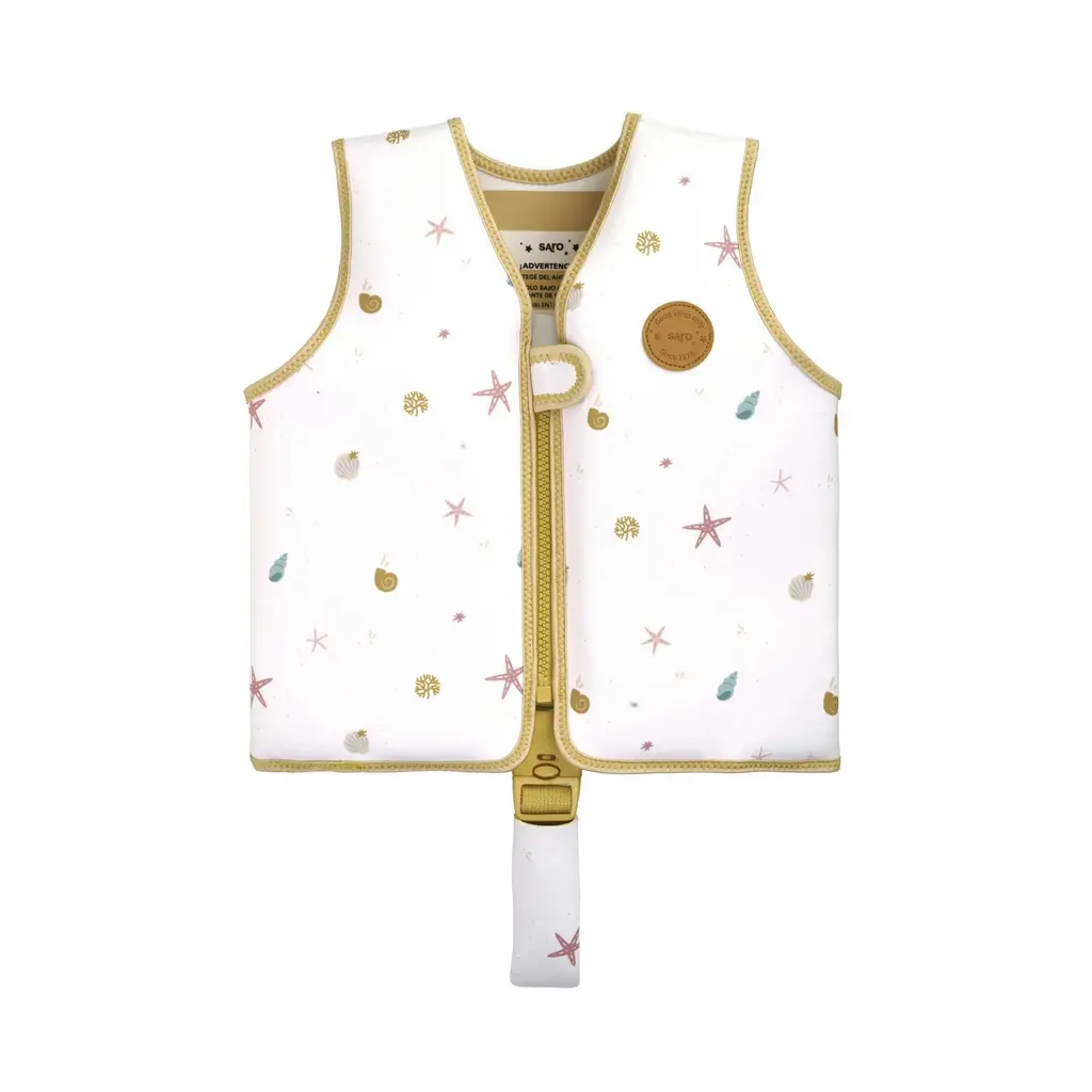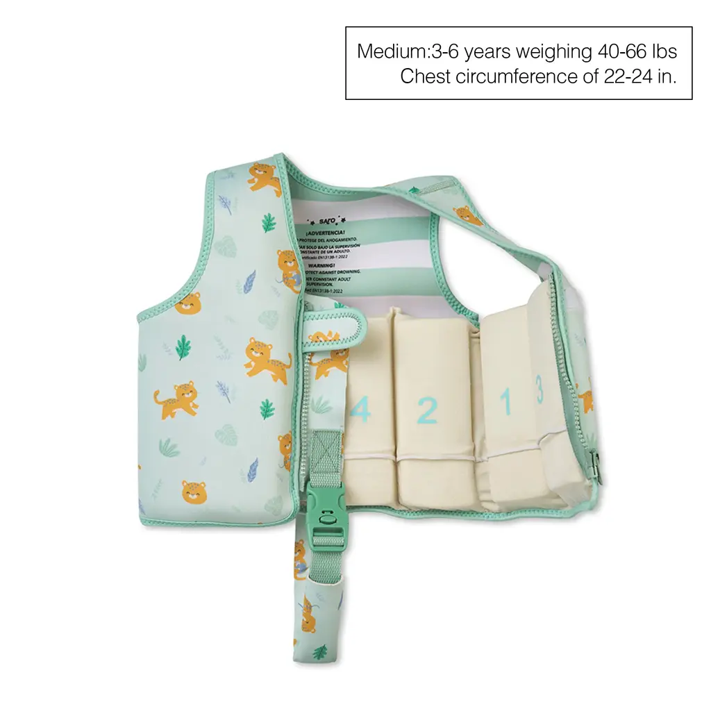 Saro's Swim Vest is designed to promote safe and comfortable swimming for young children. It features 8 compartments, each containing 3 removable flotation pieces, allowing for a gradual and customizable flotation adjustment as the child's swimming skills improve. This design ensures a smoother transition as they gain confidence in the water, unlike other vests that offer limited adjustability. The vest also includes an adjustable strap with a double safety clasp for added security, along with neoprene material for comfort and durability. Size M: For children ages 3-6, weighing 40-66 lbs, with a chest circumference of 22-24 inches. • Enhanced Safety & Comfort: Designed for young swimmers with a focus on safety and comfort. • Adjustable Flotation: Features 8 compartments, each containing 3 removable flotation pieces for customizable buoyancy. • Gradual Transition: Allows for a gradual reduction of buoyancy, aiding in building swimming confidence. • Flexibility & Progress: Offers more adjustability than other vests, supporting skill development. • Secure Fit: Includes an adjustable strap with a double safety clasp for added security. • Durable Material: Made from neoprene, ensuring durability and comfort for long wear. • Size M Specifications: Suitable for children aged 3-6years, weighing 40-66 lbs, with a chest circumference of 22-24 inches