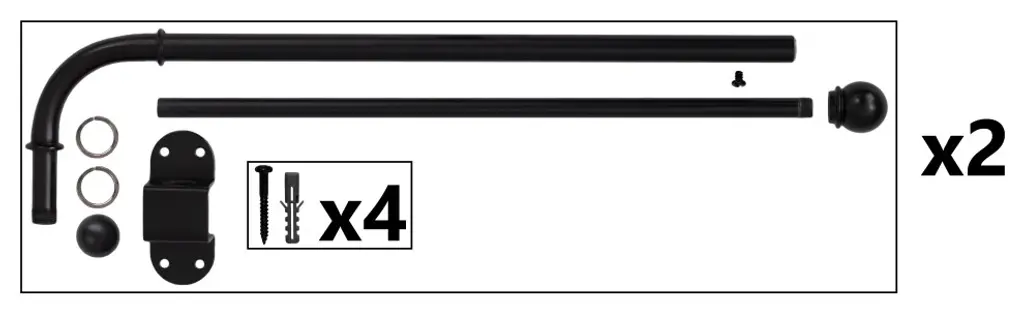 Swing Arm Rod, 1/2", 14"-24", Black, Set Of 2
