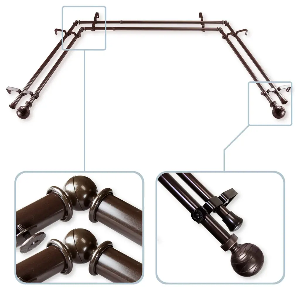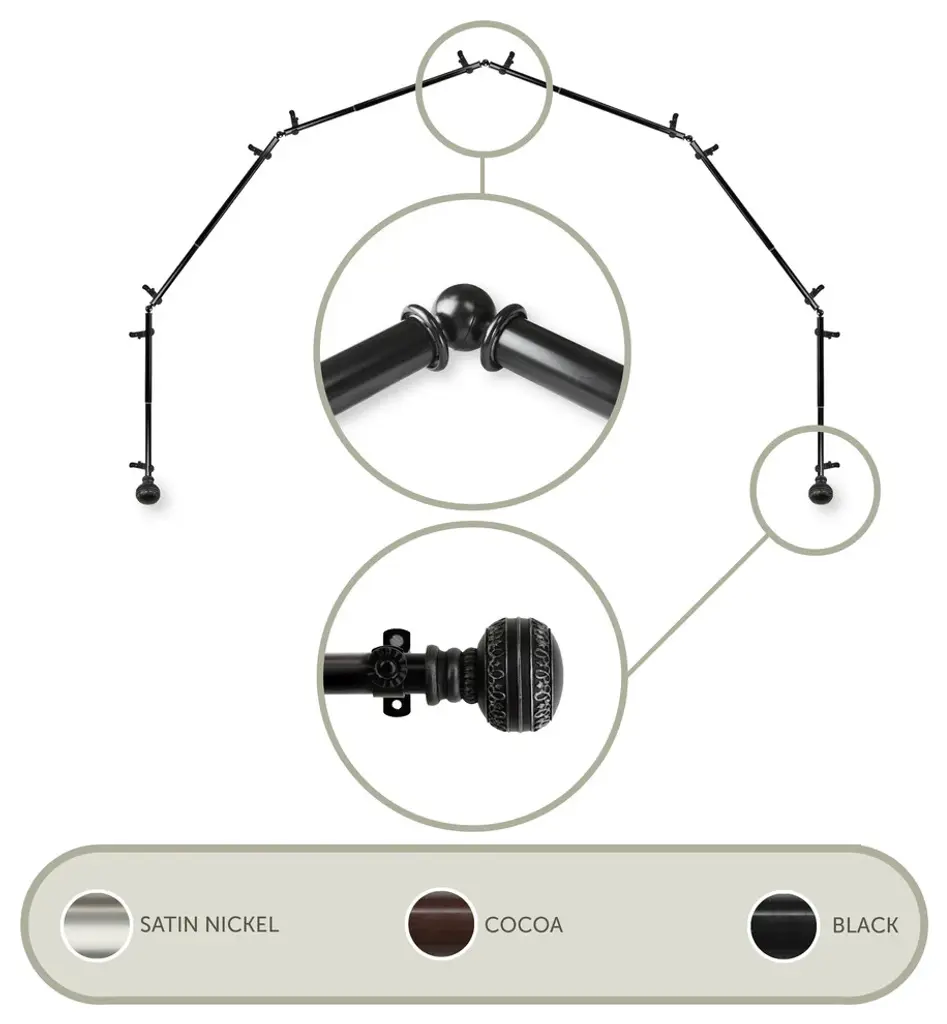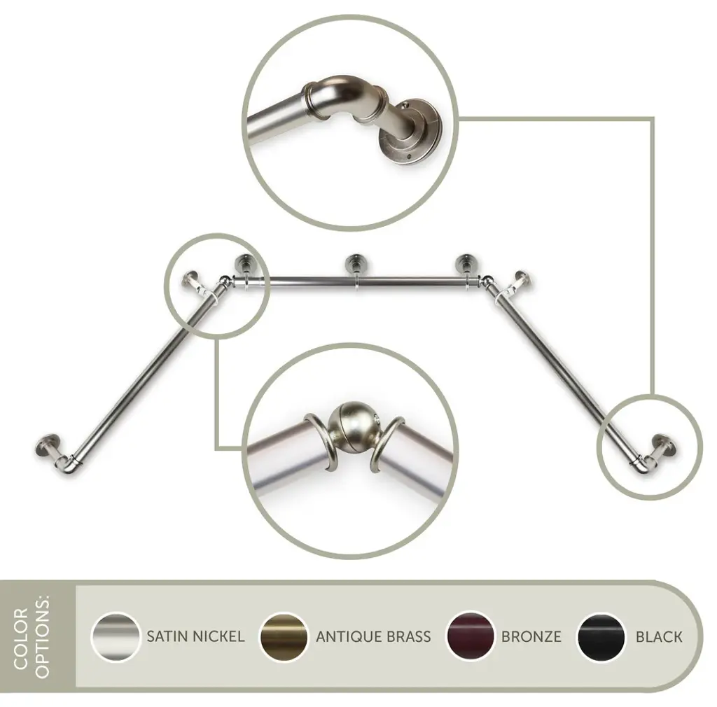 Urbanest metal swing arm curtain rod offers flexibility and styleRod extends from 14" at the bend to 24". Diameter of rod is 1/2". Wall mount span is 2 3/4".Arm swivels 180 degrees for flexibility. Mounting hardware and instructions included for easy installation.Available in 7 colors: Black, Glossy White, Bronze, Brushed Steel, Antique Brass, Pewter, and Antique GoldPrice is for two rods.
