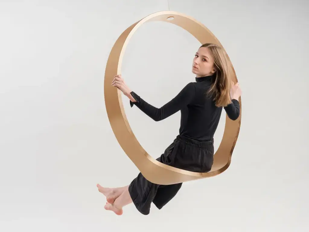 These SWINGS, are made by oak bent plywood, with a gold brass or silver Gilding Liquid finish. Altogether creating a resplendent piece to grace any luxury residence. The swing it is unsuitable to outdoor. It is not hot sunlight and rain resistant.