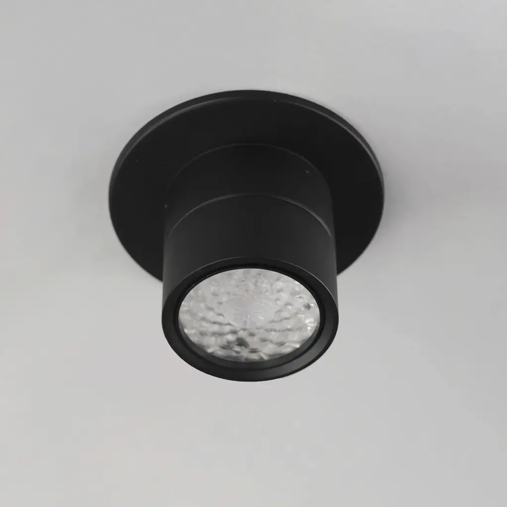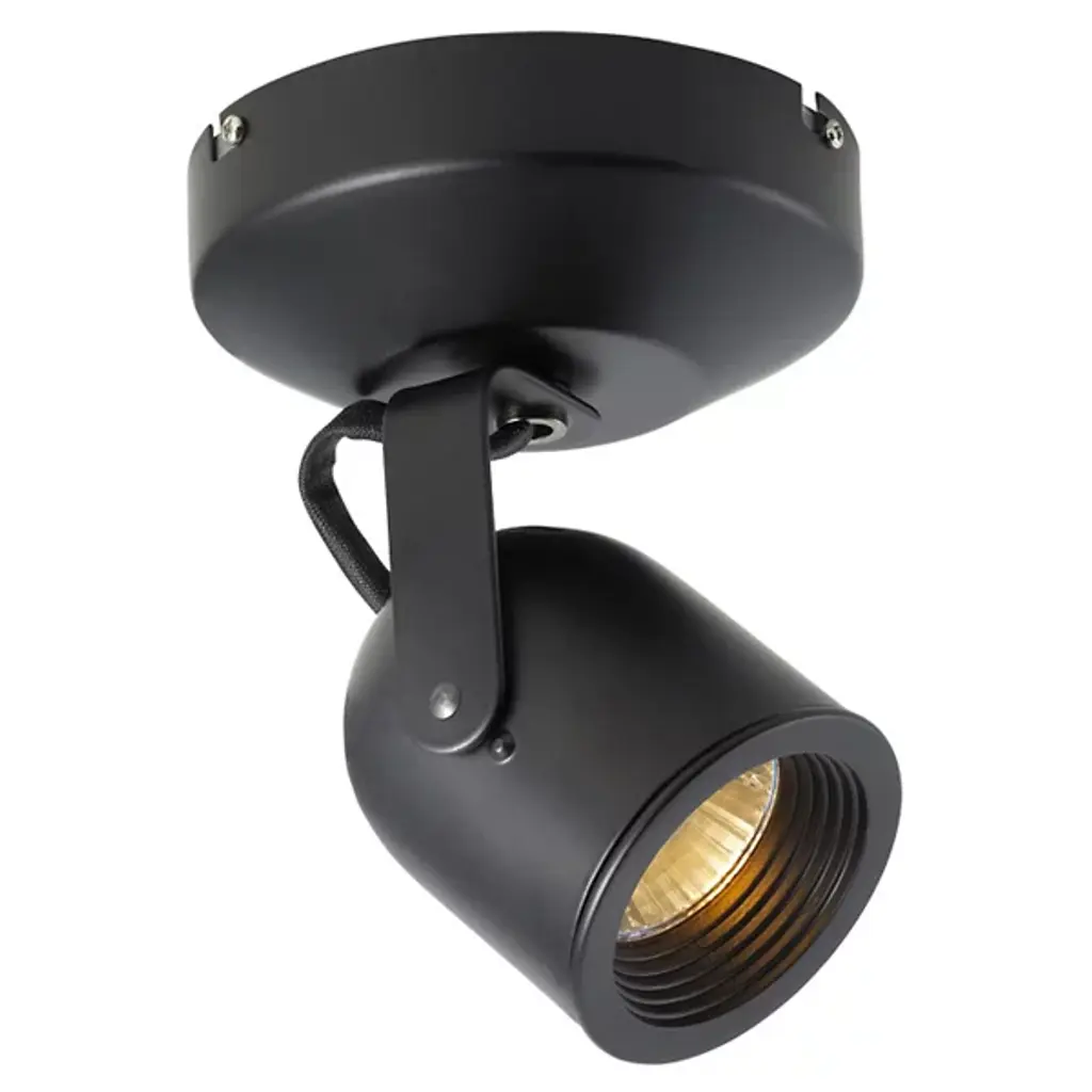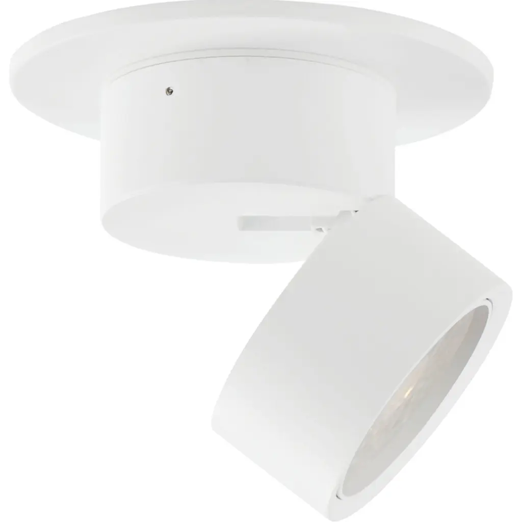 Inconspicuously recessed within its cylindrical house, an extending arm transforms this surface mounted light fixture into an adjustable spotlight. Simply unthread the top half along the seam to extend the frame length and swing the fixture into position. Twist the lens on the face of this fixture to adjust its beam angle spread. Available in Black and White and two apertures that include a mud-in ring for an even cleaner installation.