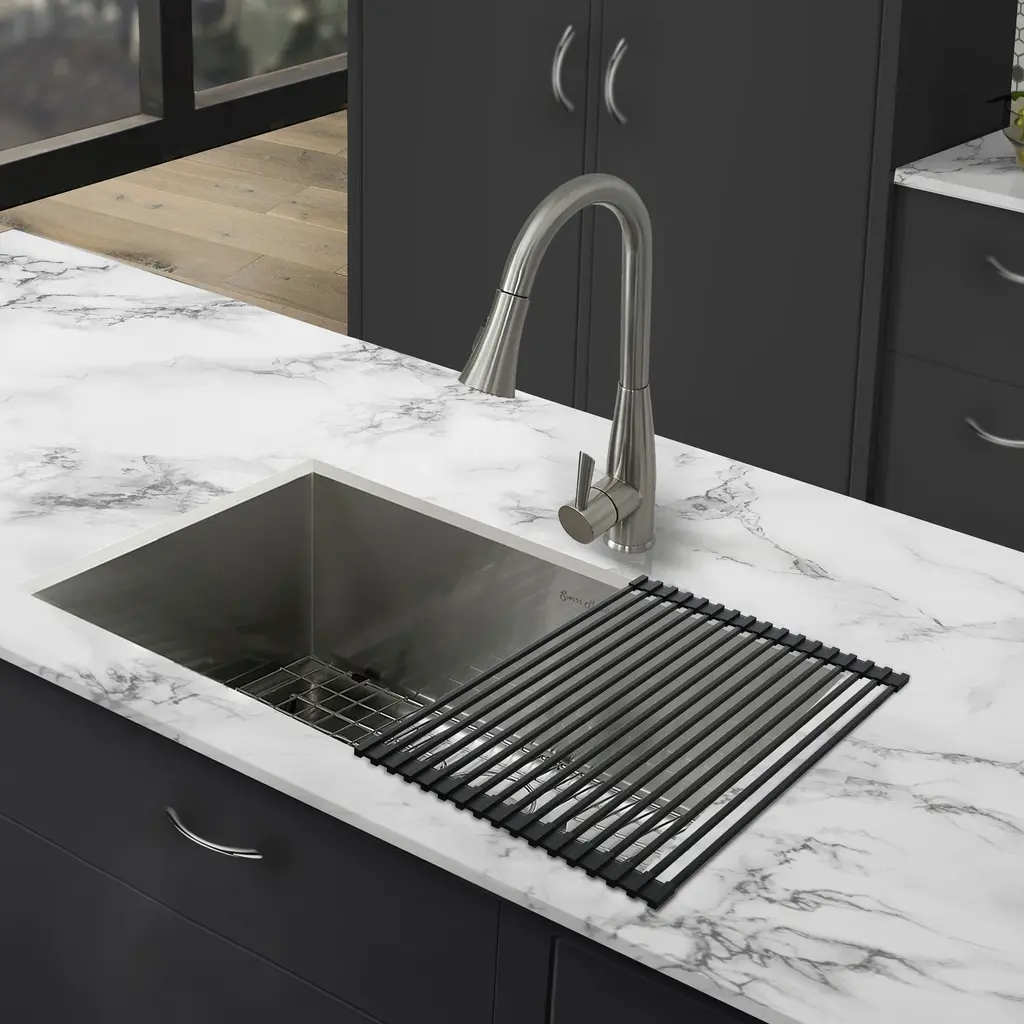 These multi-purposeful roll-up grids were built with efficiency and flexibility in mind. Built with non-slip silicone technology, it's resistant to corrosion and rust. This piece helps save space by providing an area for dishes, frozen foods to defrost, or vegetables to dry. Available in a variety of colors, this roll-up grid is an ideal addition to any kitchen.