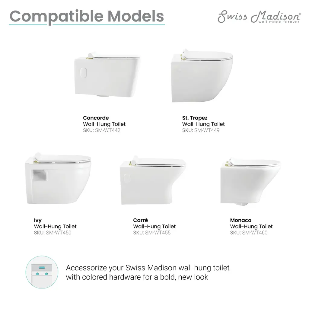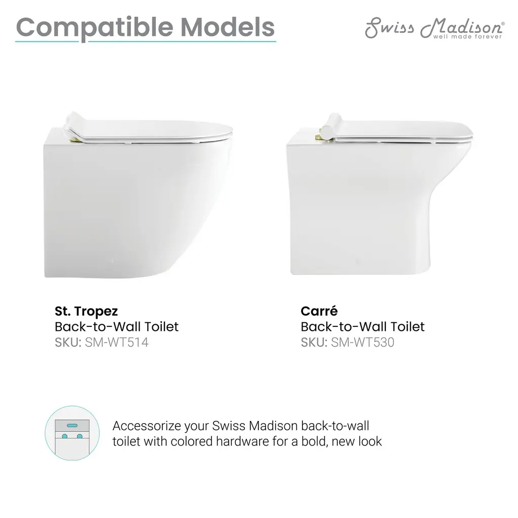 The colored toilet seat hardware and push-buttons give customers the ability to customize their bathroom décor. Available in a variety of color options, these additions will make any bathroom setting feel unique.Swiss Madison SM-CH06 Features:Swiss Madison SM-CH06 Specifications: