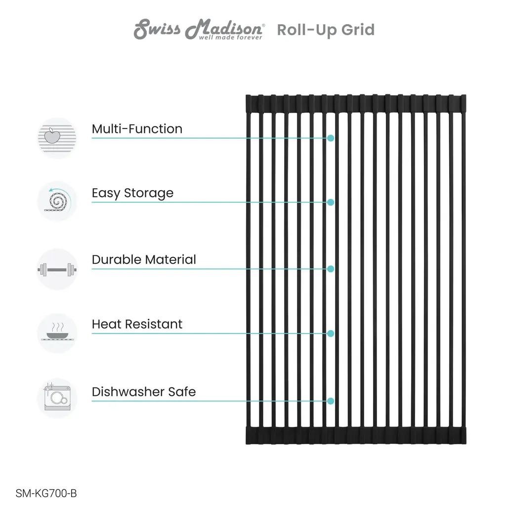 Swiss Madison Sm-Kg700 20-1/2" L X 13" W Silicone Roll Up Sink Grid - Black