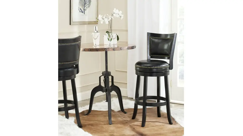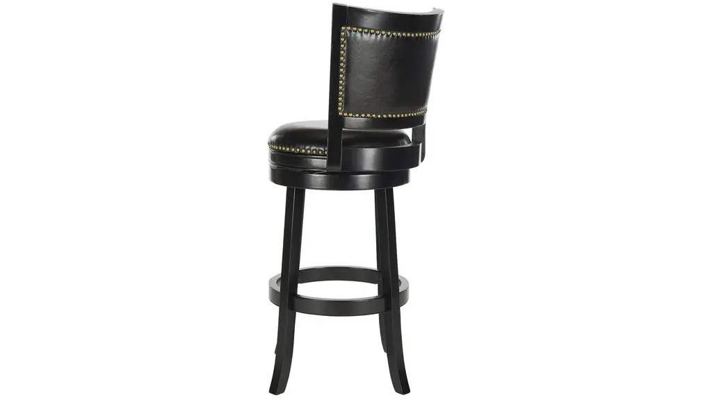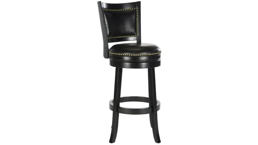 With its elegant low profile backrest, the Switzer Swivel Bar Stool is as comfortable as it is good looking. Upholstered with black PU leather with bronze nailhead trim, this luxe bar stool is crafted of eco friendly hardwood in a chic black finish.