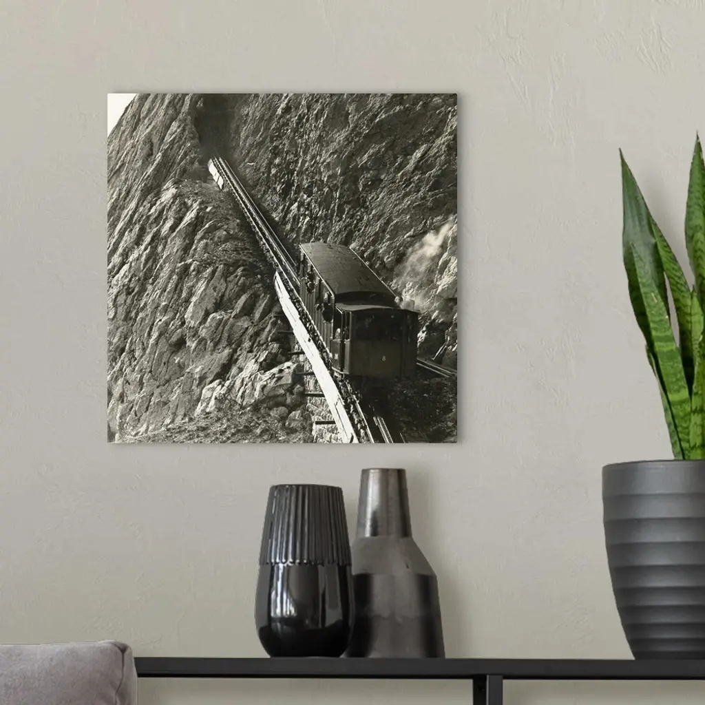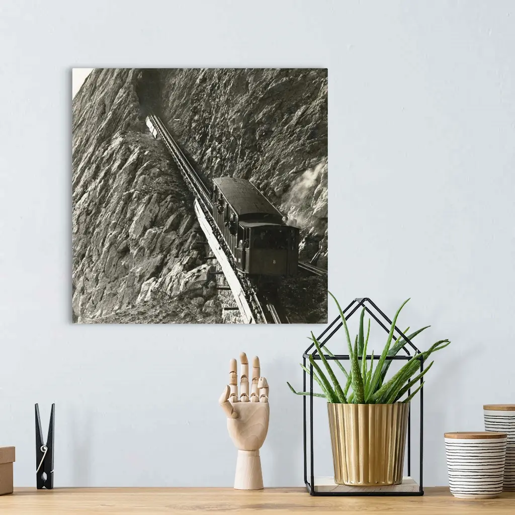 Switzerland, Mt. Pilatus. 'The Railway Up Mt. Pilatus - Car Approaching the Summit, Switzerland.' Stereograph, C1908.