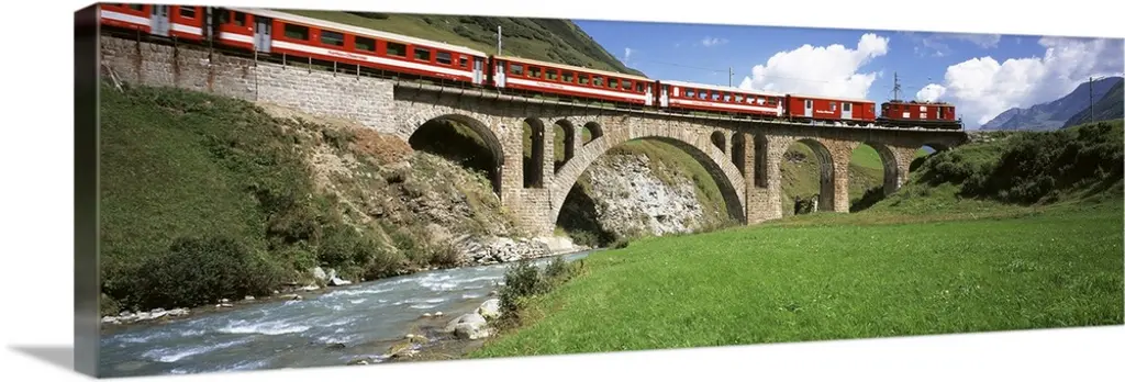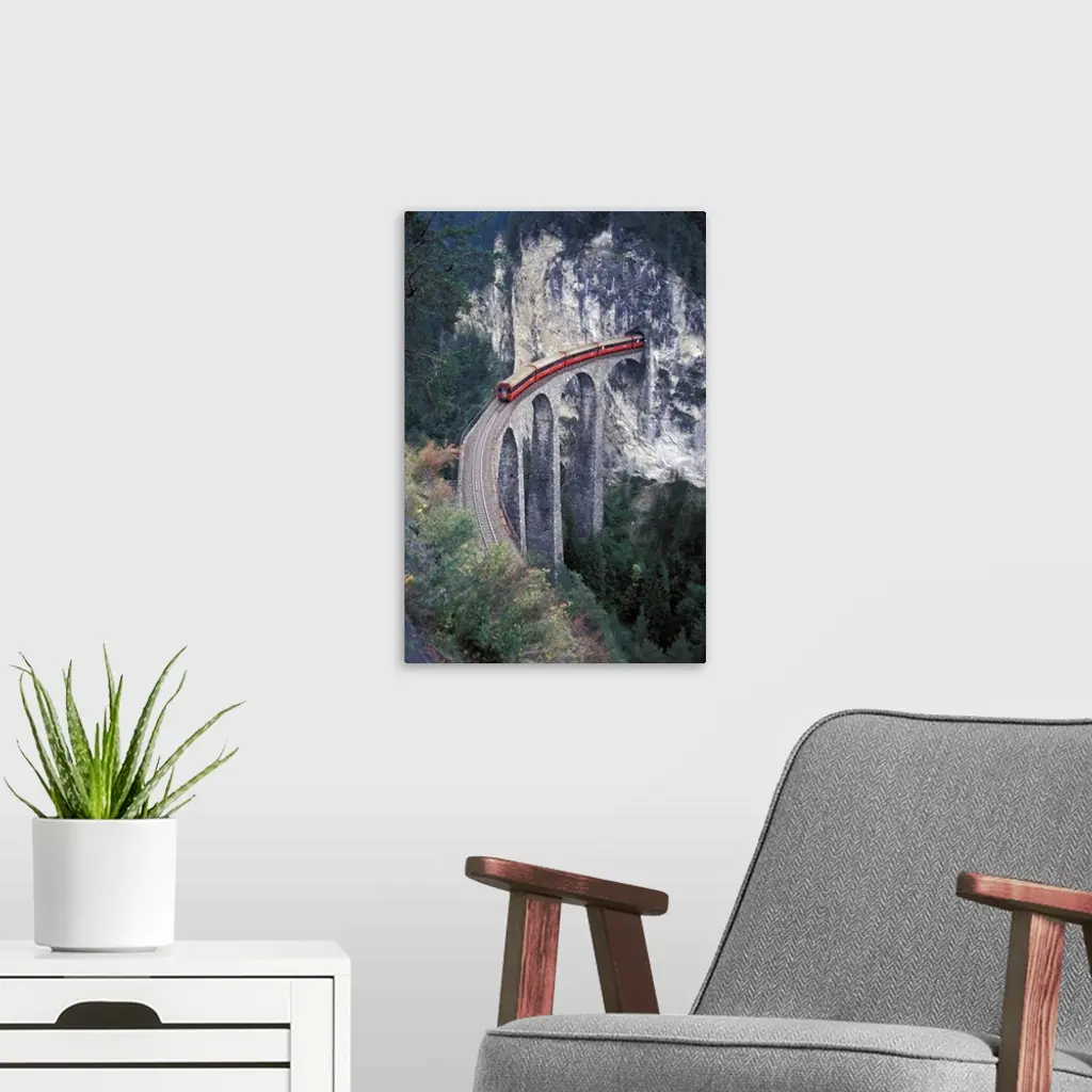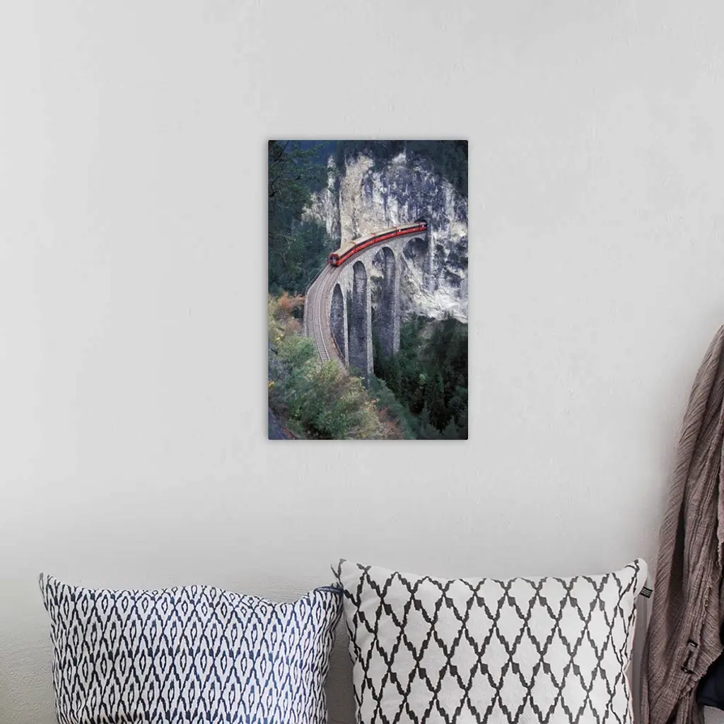 Switzerland, Passenger Train On The Tallest Rock Bridge In Switzerland