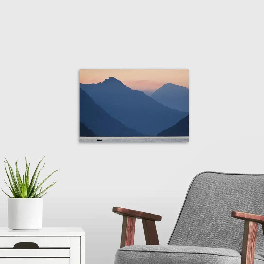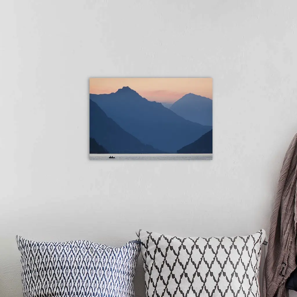 Switzerland, Ticino, Lake Lugano, Lugano, dawn view of the Alps
