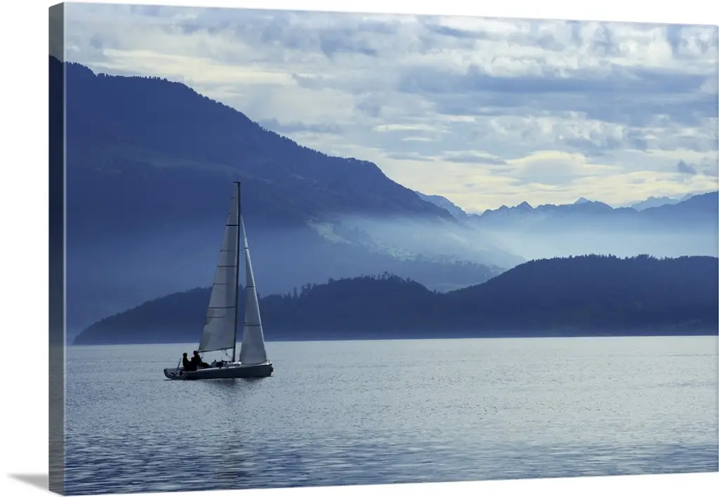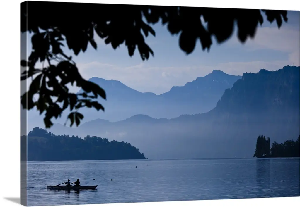 Switzerland, Ticino, Lake Lugano, Lugano, Dawn View Of The Alps