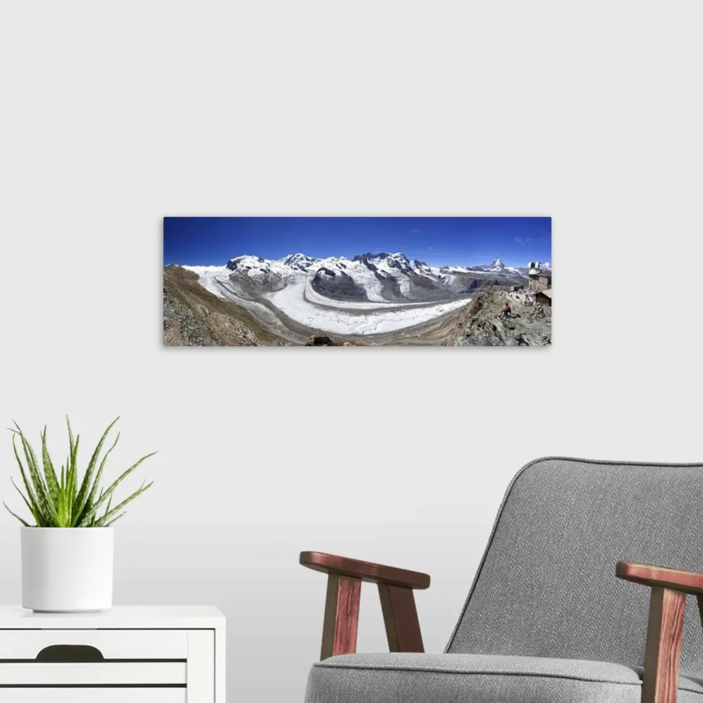 Switzerland, Valais, Zermatt, Gornergrat Mountain, Monte Rosa And Glaciers