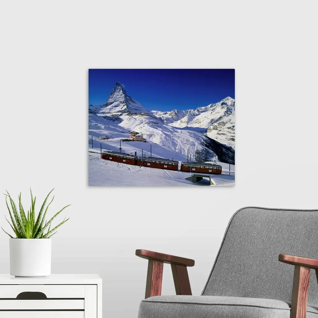 Switzerland, Valais, Zermatt, train and Matterhorn wall art for home and office decor. Discover canvas art prints, photos, mural, big canvas art and framed wall art in GreatBigCanvas.com's varied collections.