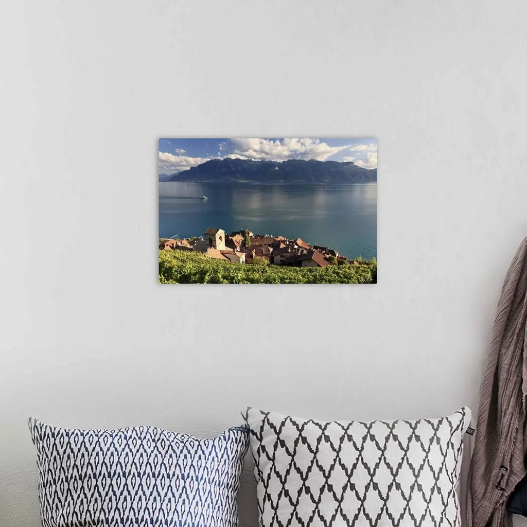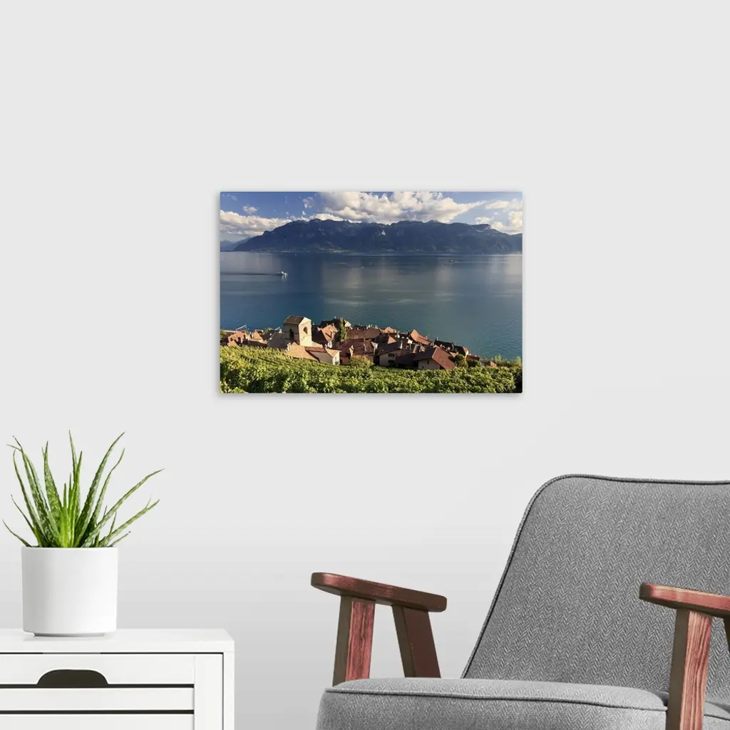 Switzerland, Vaud, Lavaux Vineyards, St. Saphorin Village And Lake Geneva