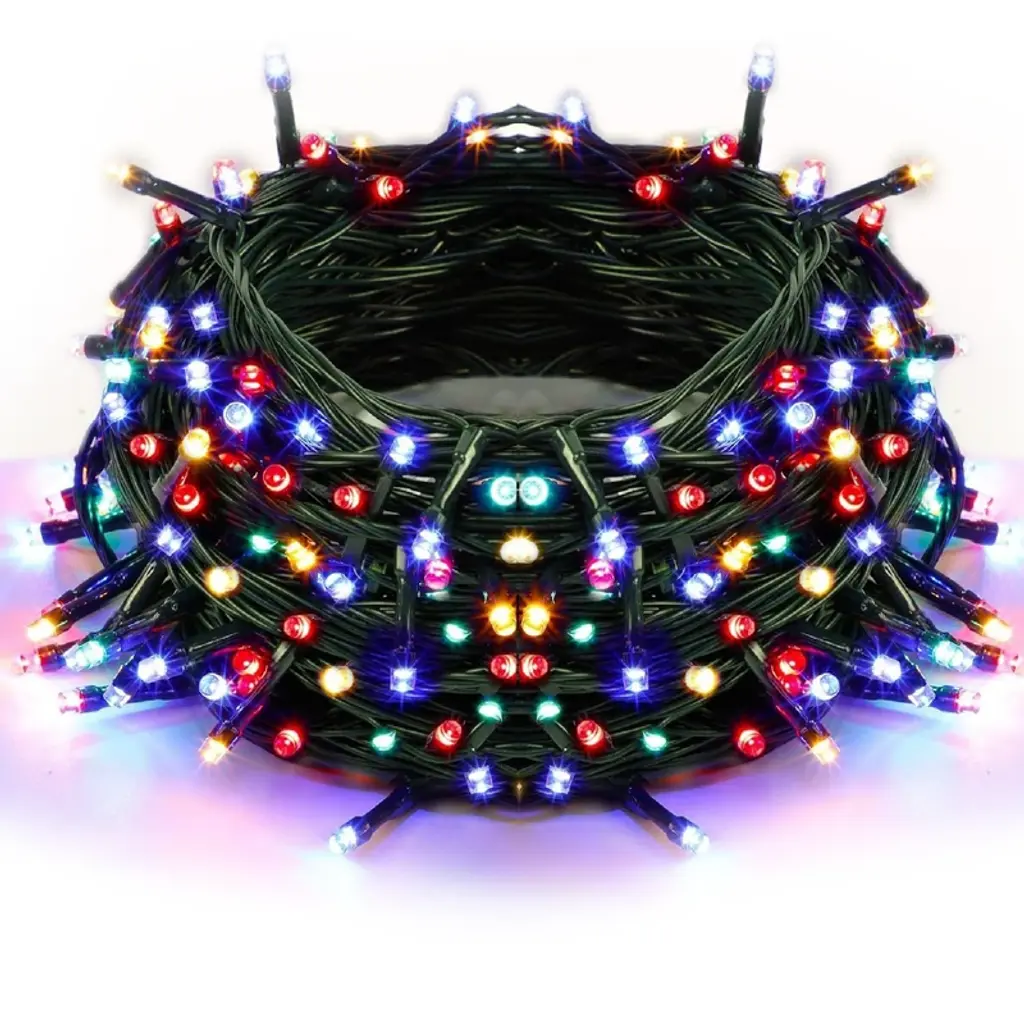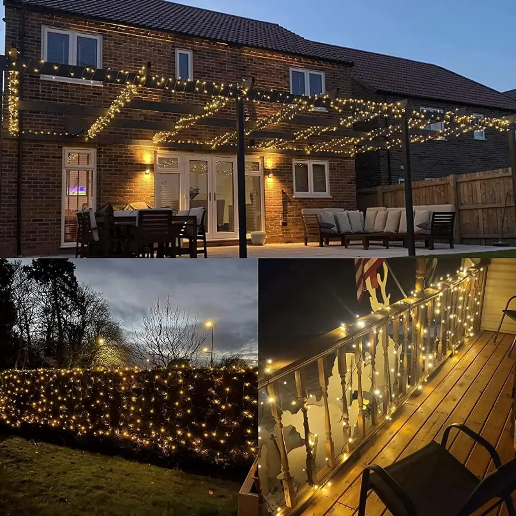 The Swtroom 82ft Warm White LED String Lights with 8 Lighting Modes – Create magical ambiance year-round with these versatile plug-in lights featuring 200 energy-efficient LEDs. Choose from 8 dynamic modes (twinkle, chase, fade, etc.) via the adapter button, and connect up to 5 strands (410ft total) for expansive coverage. The IP44 waterproof design withstands outdoor elements while UL-certified 29V low-voltage operation ensures safety. Perfect for Christmas trees, weddings, patios, and commercial displays.