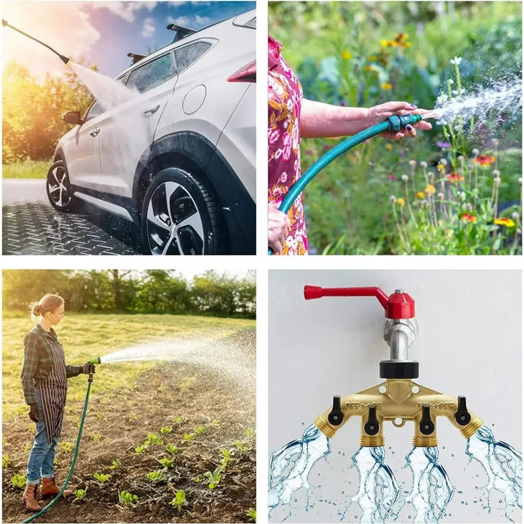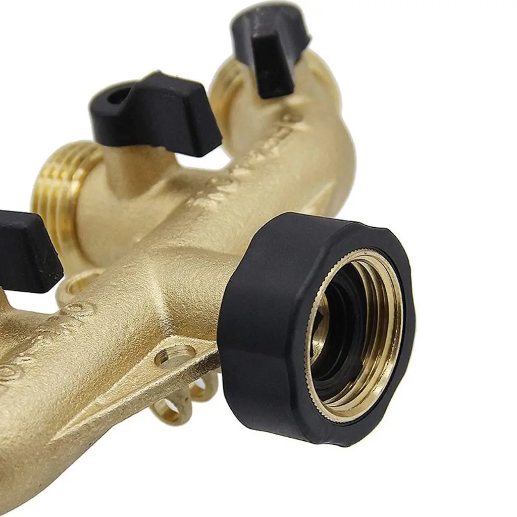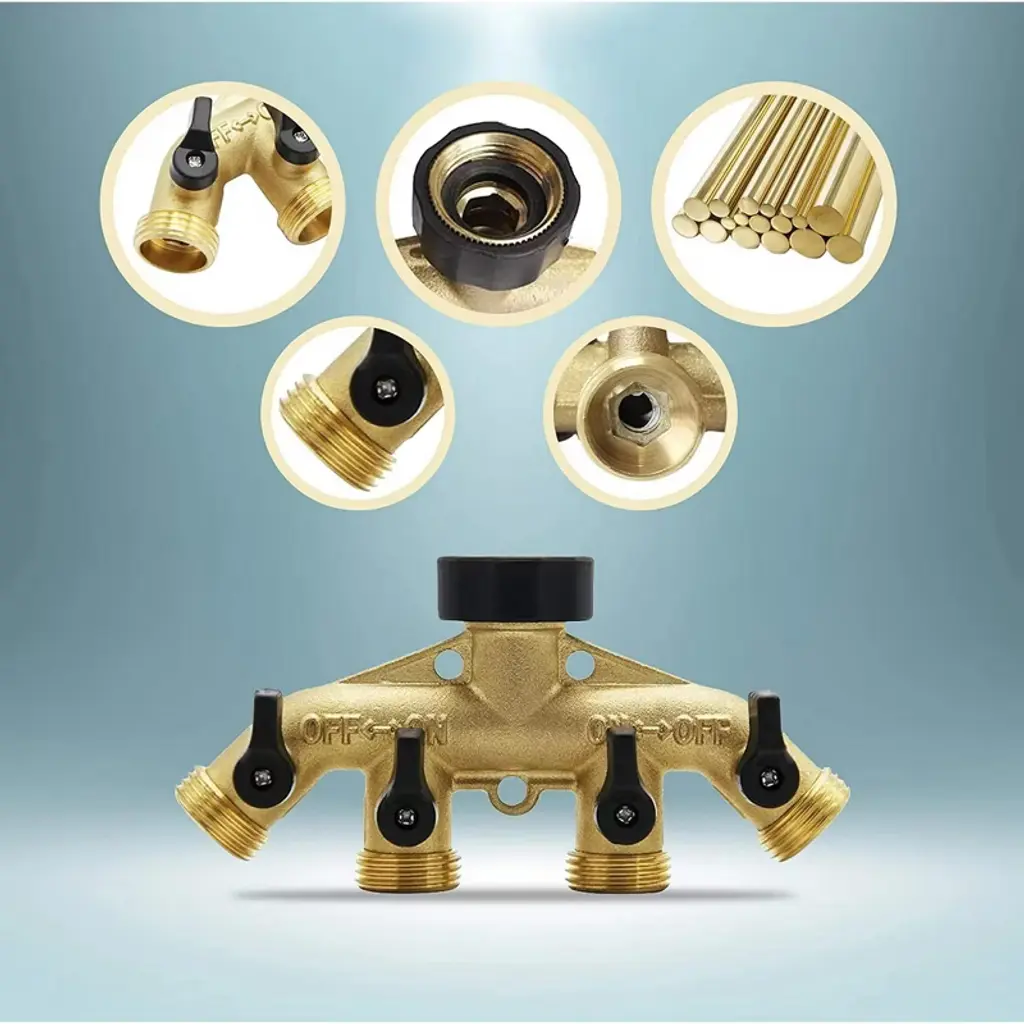 Swtroom Garden Hose Splitter Solid Brass Spigot Adapter Faucet Manifold With 4 Valves