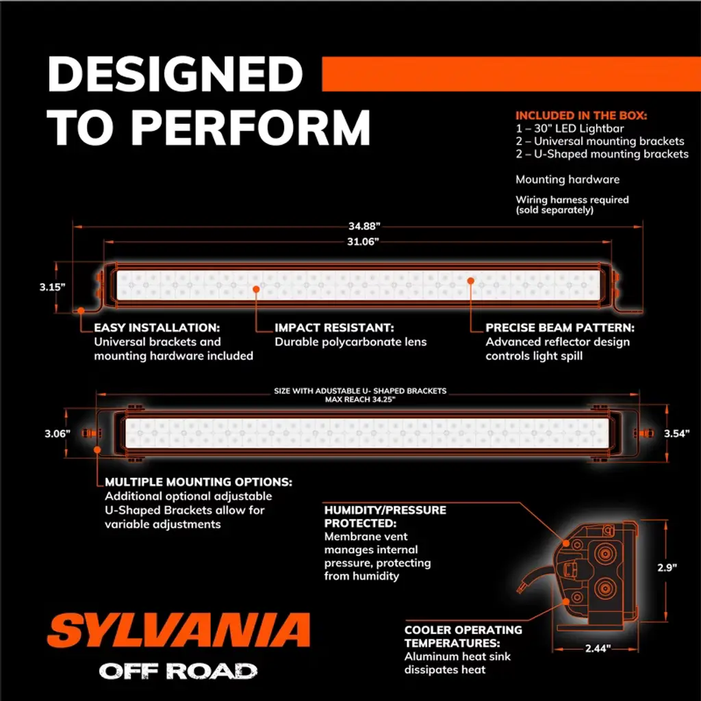 Sylvania - Ultra 30 Inch Led Light Bar - Lifetime Limited Warranty - Combo Light 11800 Raw Lumens - - For Truck, Car, Boat, Atv, Utv, Suv, 4X4 (1 Pc)