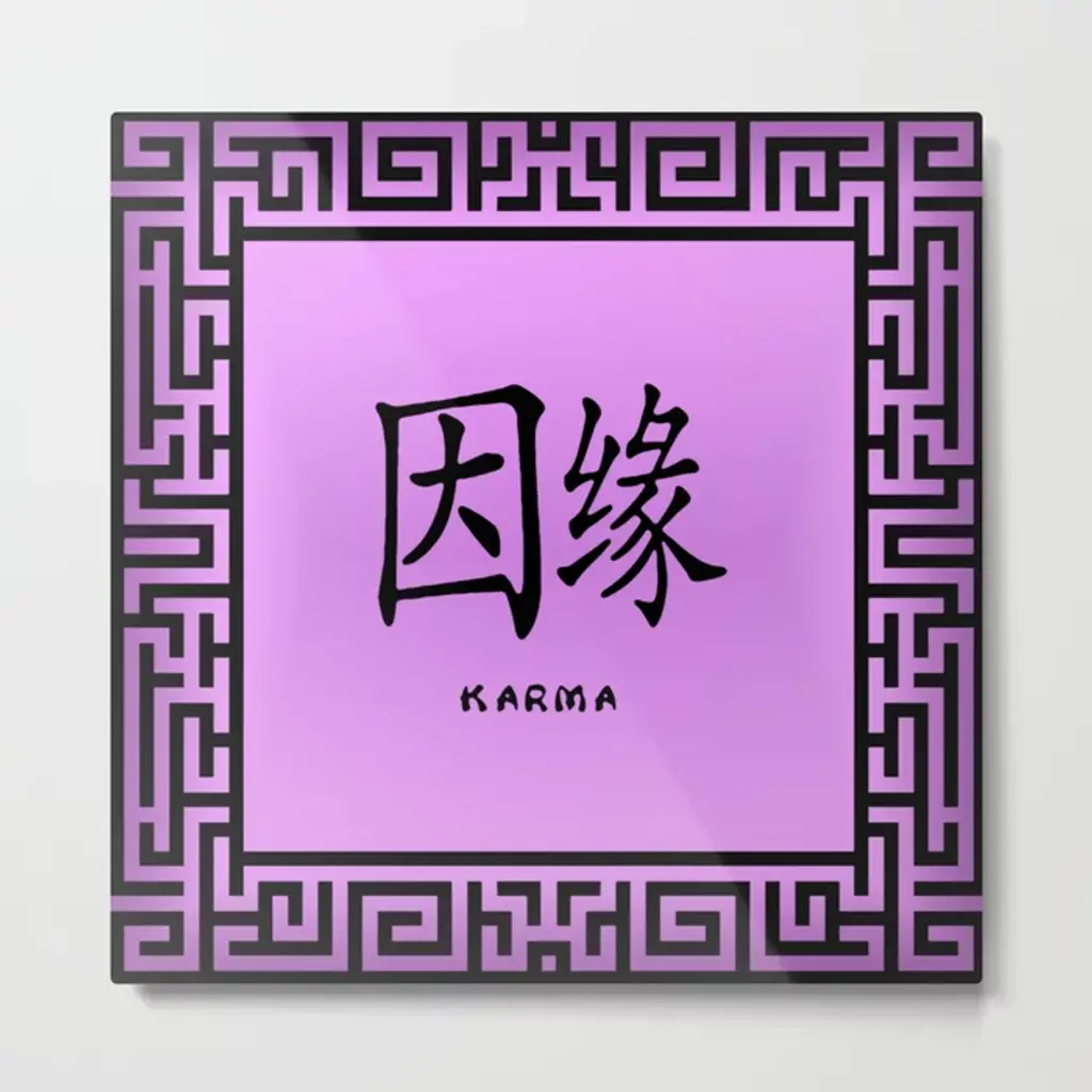 Symbol “Karma” In Mauve Chinese Calligraphy Metal Print