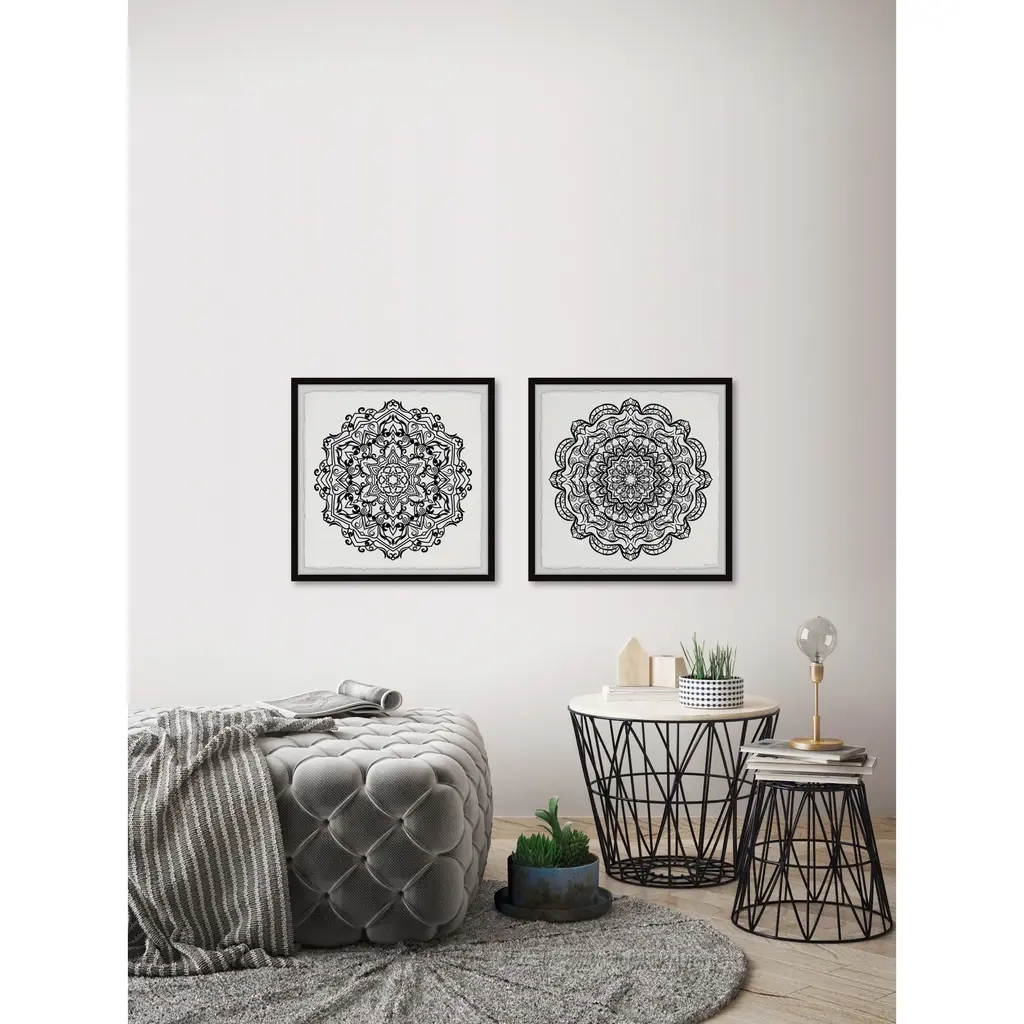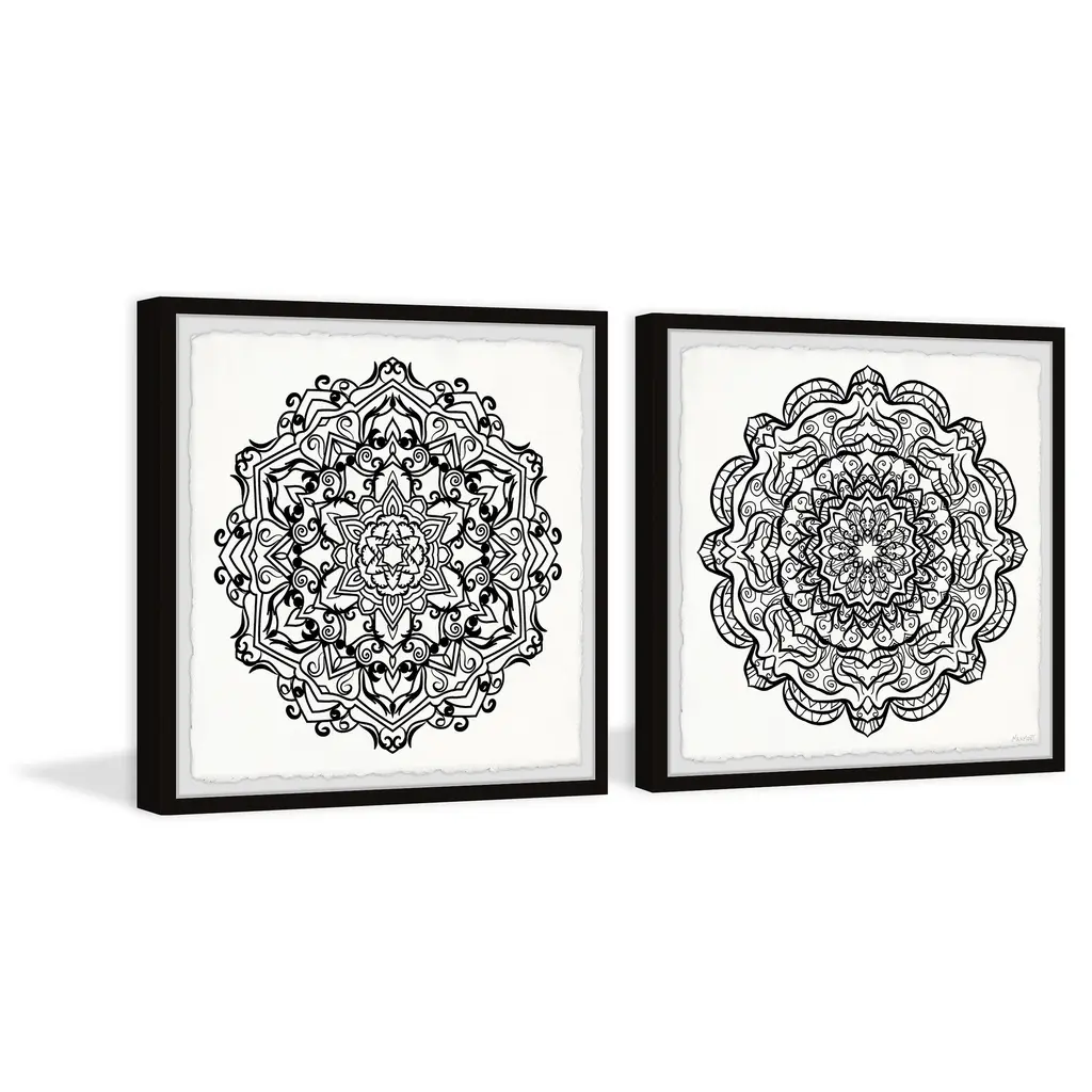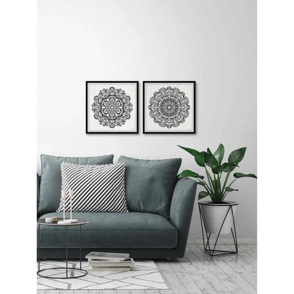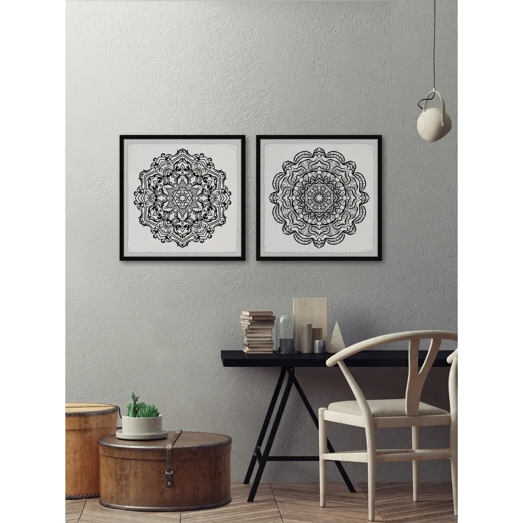 Make your wall into a cohesive art gallery with this duo of black and white drawing prints that feature two intricately drawn symmetrical patterns. Proudly printed in the USA, this piece is printed on high quality archive paper and professionally hand-framed. With wall-mounting hooks included, this artful accent is ready to hang up as soon as it reaches your front door. • Top quality Giclée print on high resolution Archive Paper • Hand cut deckled edges • High quality durable non-warping frame • Finished under shatter resistant plexiglass • Arrives ready to hang • Includes a certificate of authenticity • Printed in the USA