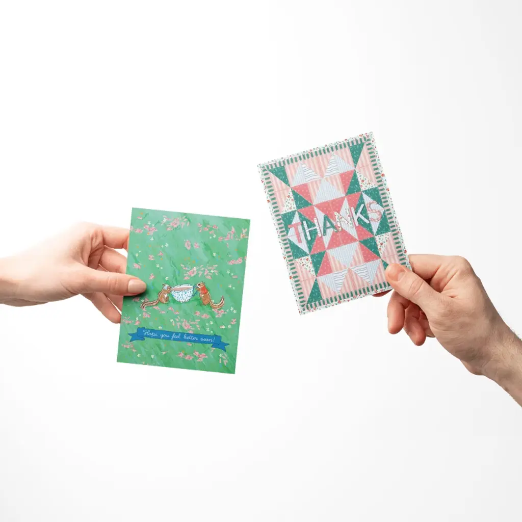 Sympathy Greeting Card Pack Sets (3 Ct, Assorted) Feel Better Chipmunks Tea, Thanks Quilt, Loads Of Thanks By Ramus & Co