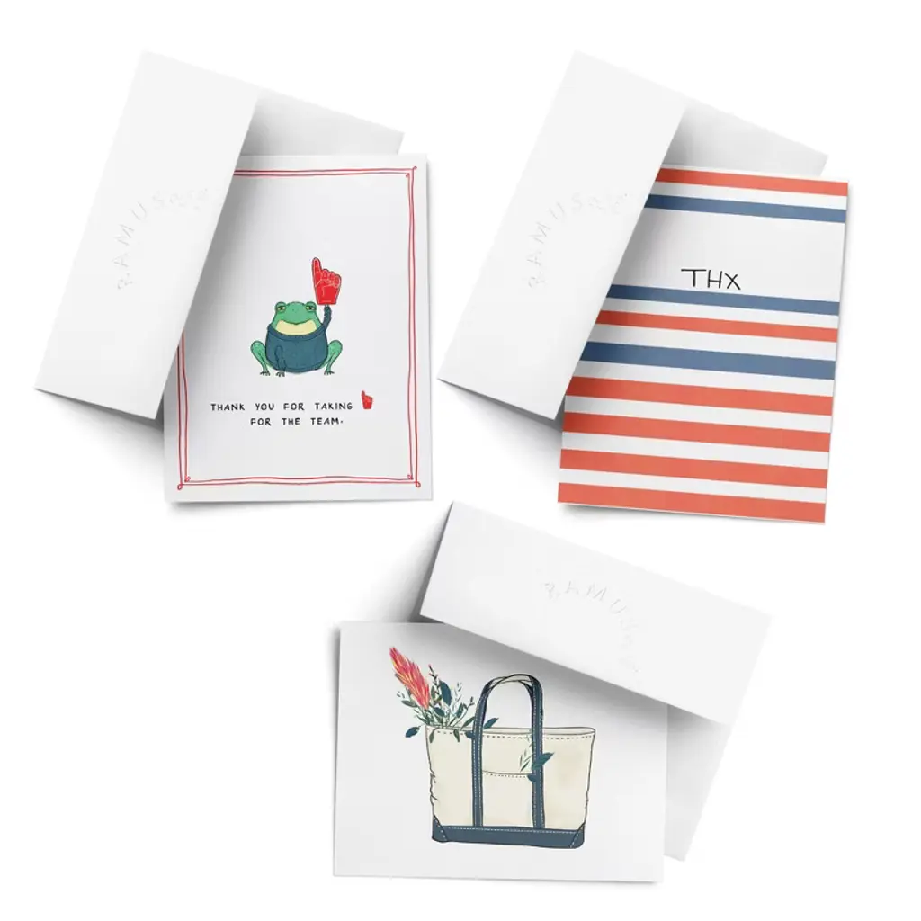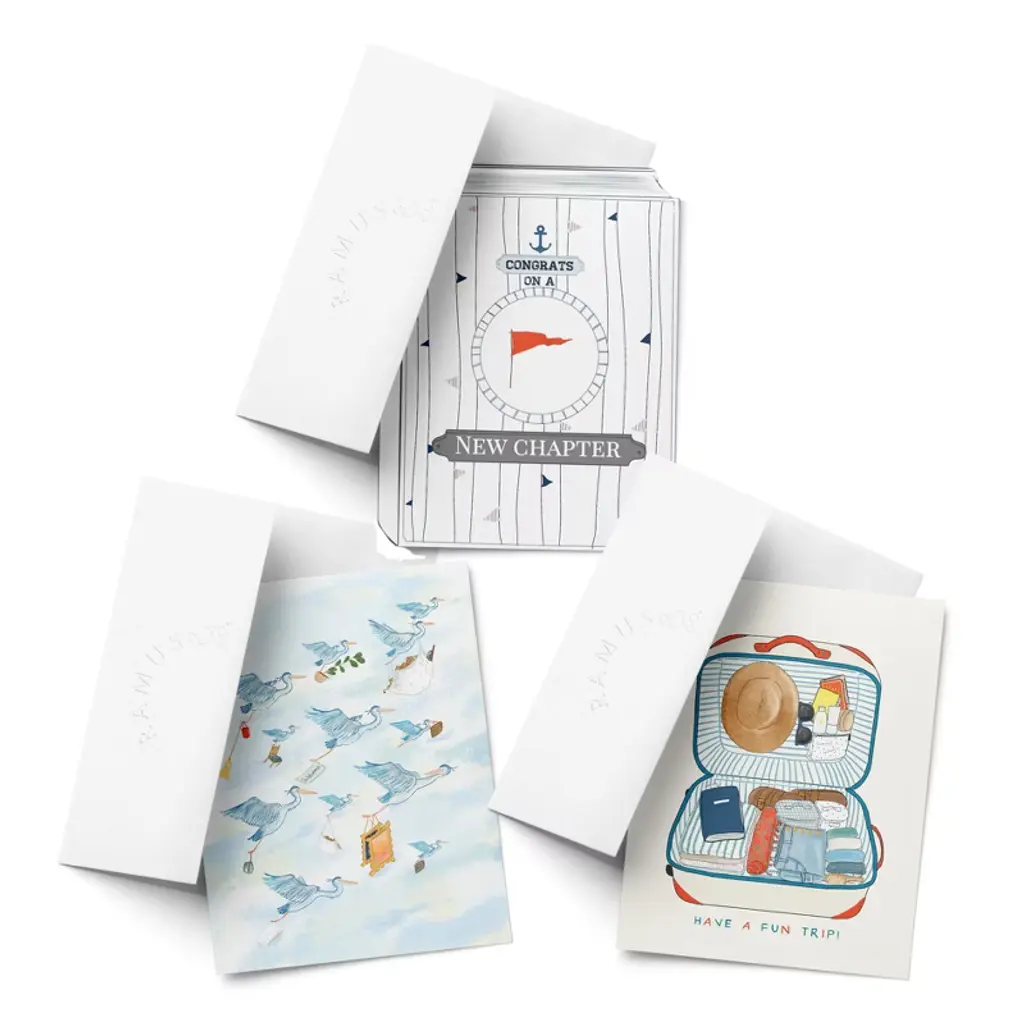 This 3-pack of assorted Sympathy greeting cards is elegantly illustrated by artist Ingrid Ramus, founder and owner of the Ramus & Co brand. The cards are blank inside. All greeting cards are made in the USA on heavyweight uncoated and locally-manufactured card stock. Each card is individually wrapped in TUV Austria certified-compostable PLA sleeves that meet both ASTM D6400 & EN 13432 standards. Each card is accompanied by a hand-embossed envelope made with heavyweight 95lb paper and a peel-and-stick flap - no licking envelopes here! All Ramus & Co. greeting cards are printed on FSC¬ and SFI¬ certified paper sourced from a regional mill that harnesses 66% of its energy from on-site sustainable sources, such as emission-free hydroelectricity and biomass co-generation from wood waste. Additionally, our greeting cards are thoughtfully packaged in bags made from certified compostable PLA material. Husband-and-wife team Calvin and Ingrid Ramus founded Ramus & Company in 2019, in New England, USA. Ingrid, the creative designer behind the brand, originates from Mexico, where she cultivated her skills in fashion and textile design. Drawing from her unique and inquisitive perspective on preppy style, Ingrid prolifically designs whimsical yet classic stationery and lifestyle items.