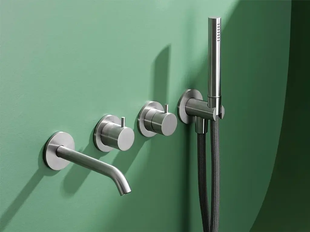 SYNTH is a hand shower art.0700 with bracket/water connection art.0421.Available finishes: Brushed stainless steel, Deep grey inox, ceraMINA colors.Synth, harmonizing water. Water temperature and flow rate are like volume and melody tone which should be carefully regulated in order to reach the ideal comfort. The tap control is enriched with incisions and grooves which allow to regulate movements. A smaller, restricted size is essential and proportionally light. The Synth collection made entirely of stainless steel consists of several proposals for basin, shower and bathtub. It likes matching vintage mood with contemporary projects. The collection is also available in a CeraMINA version: a palette of ceramic colours with pearl shades designed to find the most suitable shade for every project.From pearl black to calm green, passing through sweet blue, light rose, rich brown, vivid orange and golden yellow.
