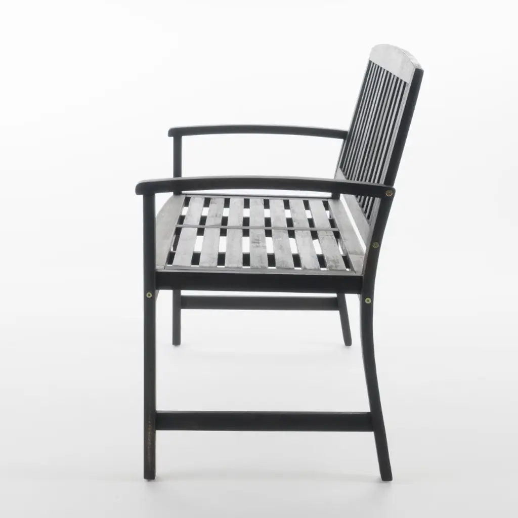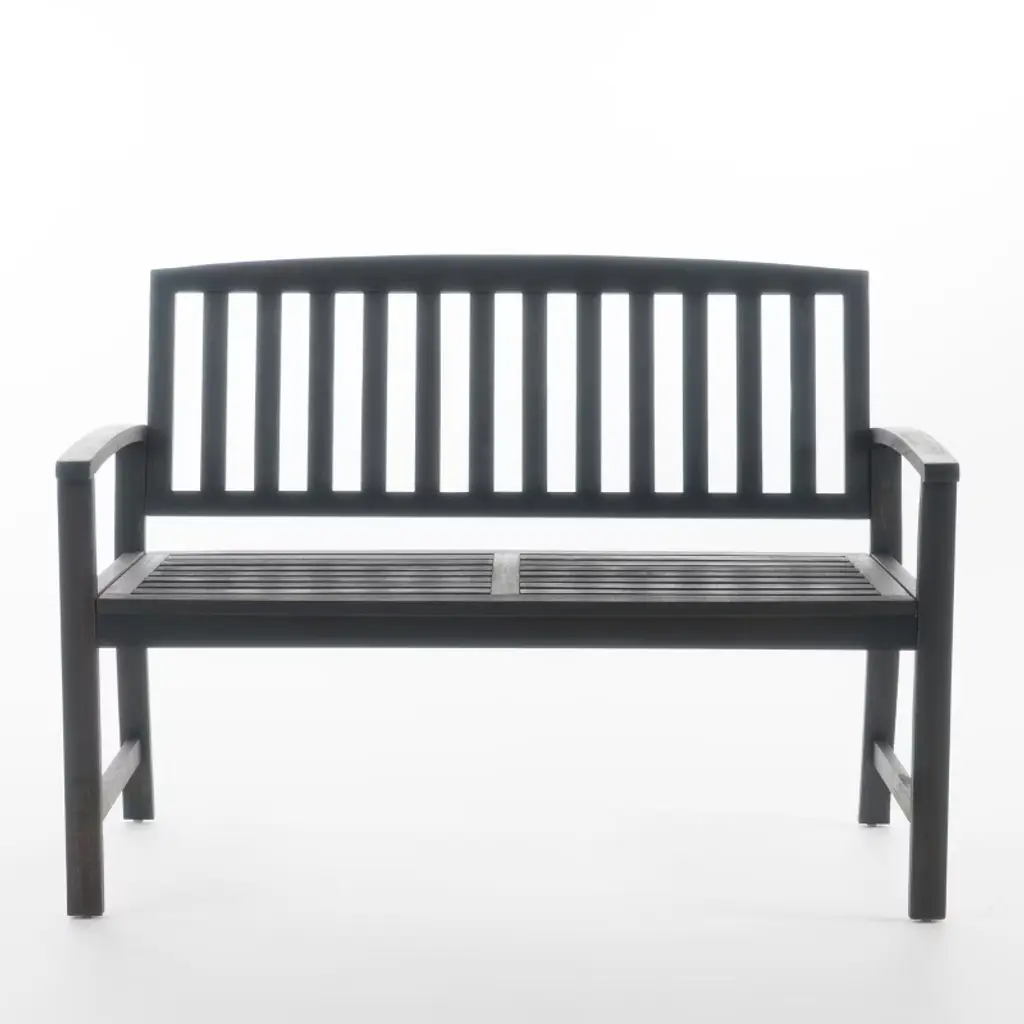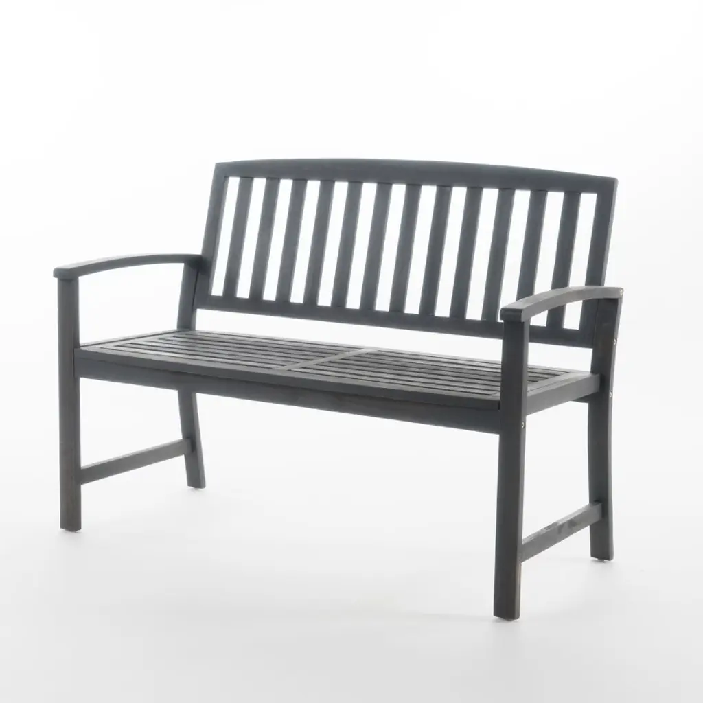 Make your outdoor decor feel warm and inviting with this farmhouse wood bench. This outdoor bench will brighten up any patio or backyard. The bench is made from durable acacia wood for a long-lasting piece you can enjoy for many years. Decorate the wood bench with accent pillows to create a cozy space in your home. Includes: One (1) Bench Material: Acacia Wood Finish available in: Dark Gray Assembly Required Dimensions: 24.25"D x 48.25"W x 35.75"H Seat Width: 44.49" Seat Depth: 18.51" Seat Height: 17.91"
