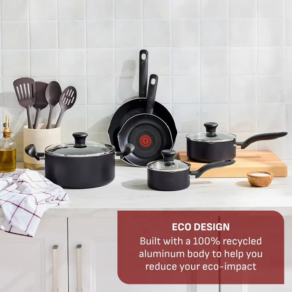 Discover T-fal Simply Cook 14 inch non-stick wok - design to provide high performance and versatility! The ProGlide non-stick interior coating ensures easy food release that needs little to no oil for healthier cooking. Crafted with a 100% recycled aluminum body (*68% of the product’s total weight) it helps you reduce your eco-impact. Includes Thermo-Spot® Technology our unique heat indicator that turns solid red when the pans are perfectly preheated to start cooking. The even heat base prevents hot sports and the comfortable handle provides and sturdy and secure grip. Oven safe up to 350°F and dishwasher safe to make everyday cooking a more enjoyable and effortless experience.About Us: For over 60 years, T-fal has been at the forefront of kitchen innovation, starting with the world’s first non-stick cookware. Our brand was built on the idea of making every day cooking easier, faster, and more enjoyable. From intuitive design to time-saving features, T-fal delivers reliable performance for home cooks who want great results without the hassle. Designed for those who value simplicity and innovation, T-fal helps you cook with ease and confidence, every day.