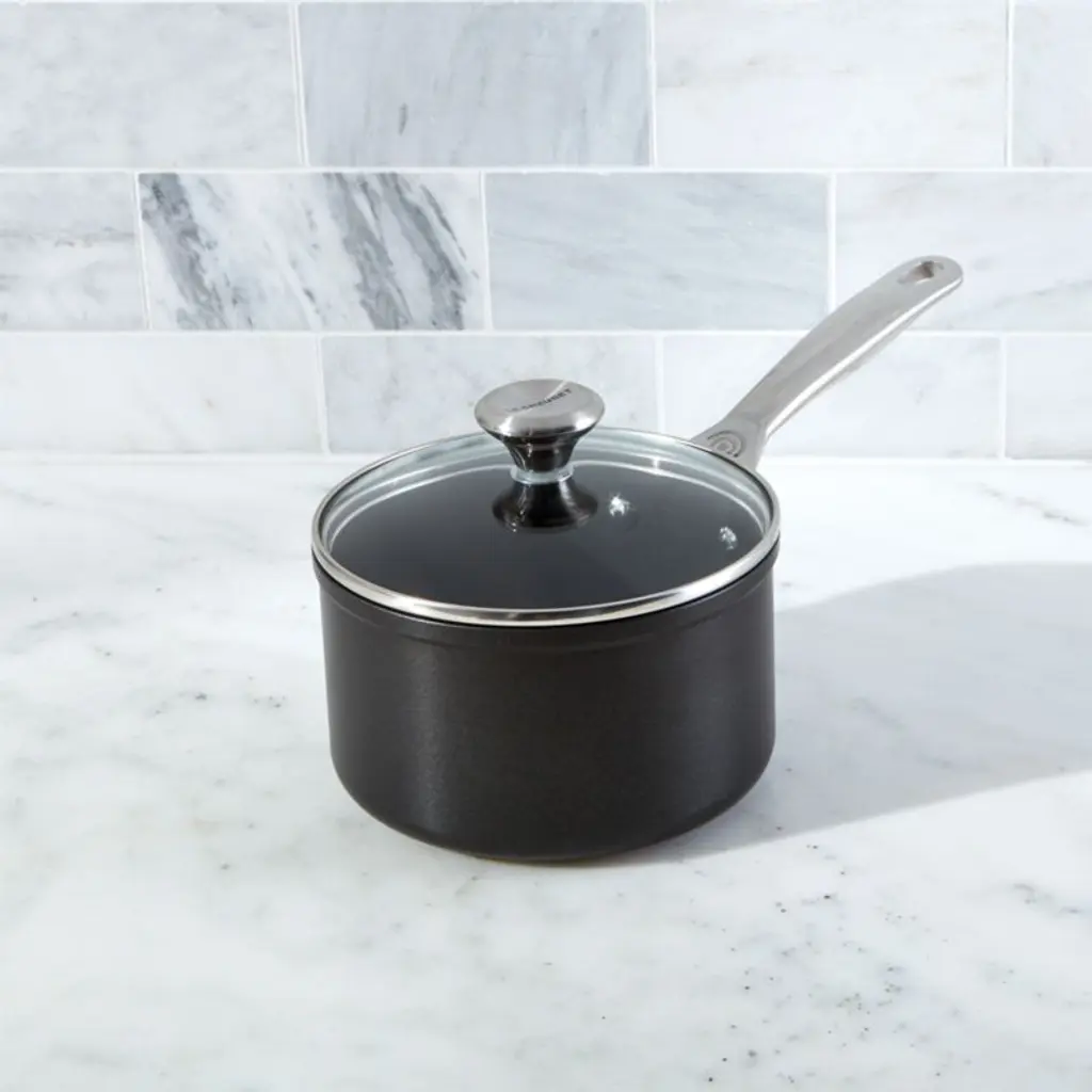 Discover T-fal Simply Cook 1.5 Quart Saucepan with Lid, design to provide high performance and versatility! The ProGlide non-stick interior caoting ensures easy food release that needs little to no oil for healthier cooking. Crafted with a 100% recycled aluminum body (*43% of the product’s total weight) it helps you reduce your eco-impact. Features an even heat base that prevents hot spots for consistent results every time. The comfortable handle provides and sturdy and secure grip, glass lid allows visibility when cooking, and the built in pouring spouts allow a mess-free pouring. Oven safe up to 350°F and dishwasher safe to make everyday cooking a more enjoyable and effortless experience.About Us: For over 60 years, T-fal has been at the forefront of kitchen innovation, starting with the world’s first non-stick cookware. Our brand was built on the idea of making every day cooking easier, faster, and more enjoyable. From intuitive design to time-saving features, T-fal delivers reliable performance for home cooks who want great results without the hassle. Designed for those who value simplicity and innovation, T-fal helps you cook with ease and confidence, every day.