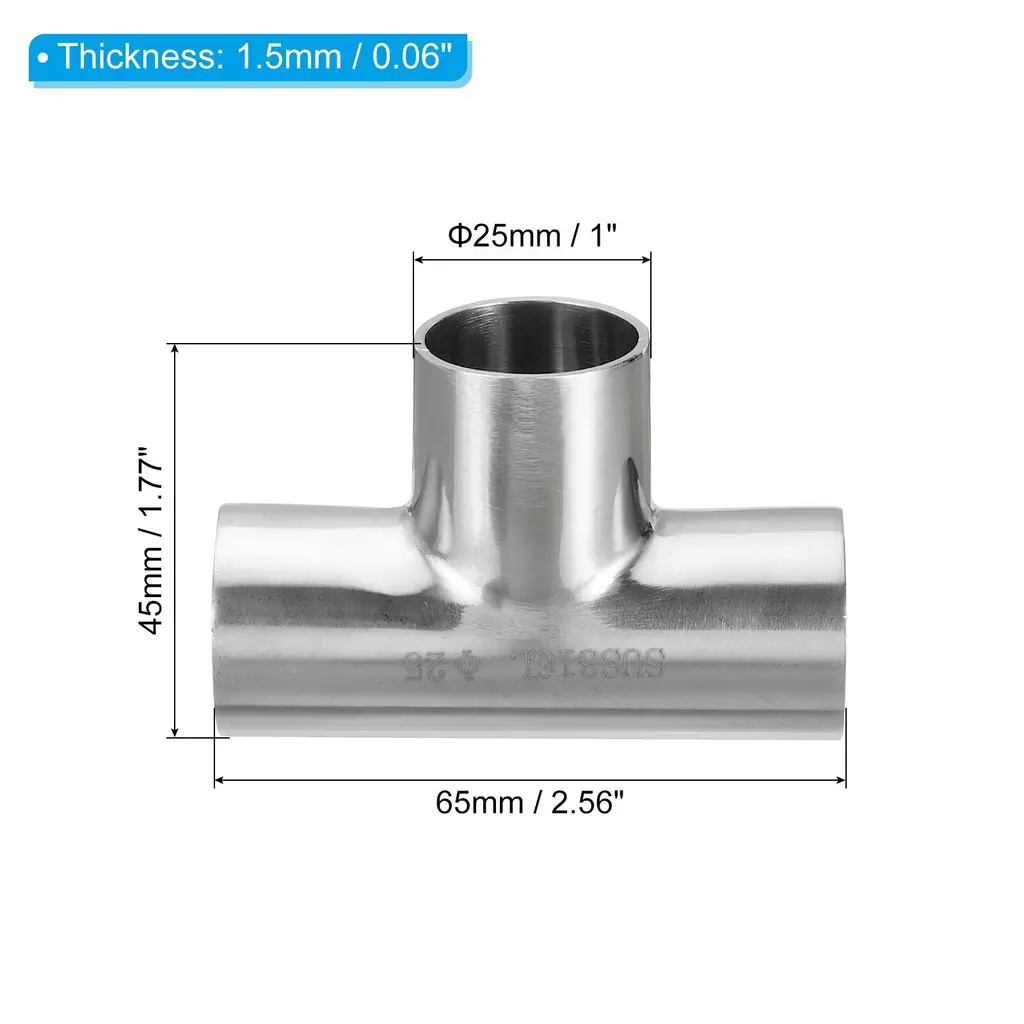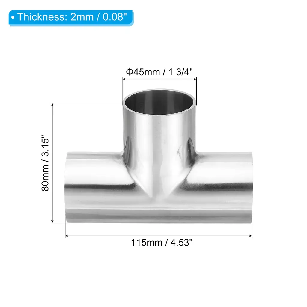 This T joint duct splitter can be applied to various industries, such as HVAC, refrigeration, automotive, mechanical, food, dairy, wine and beverage etc. It's polished, widely used in highly clean and purity piping system. It is an universal pneumatic or hydraulic fittings to connect pipes, tubes, and hoses.Specification:Color: SilverMaterial: 304 Stainless SteelLength: 52mmWidth: 37mmOuter Diameter: 14mm / 0.55 inchThickness: 1.5 mm / 0.06 inchPacking List: 1 Pcs x T Joint Duct SplitterAdvantage:The 3 way duct splitter connector is made of 304 stainless steel, which has good heat resistance performance, anti-oxidation, anti-rust, durable and corrosion-resistant, and has high hardness. 304 stainless steel is pollution-free. It is mirror polished and has a smooth surface. It's precisely sized, so don't worry about not fitting.Instruction: Clean the pipe connection area to ensure that the surface is free of dust, grease, or other debris. This T shape metal exhaust pipe splitter is normally used for pipe connection through welding.NOTE: Need to confirm the pipe size before ordering.