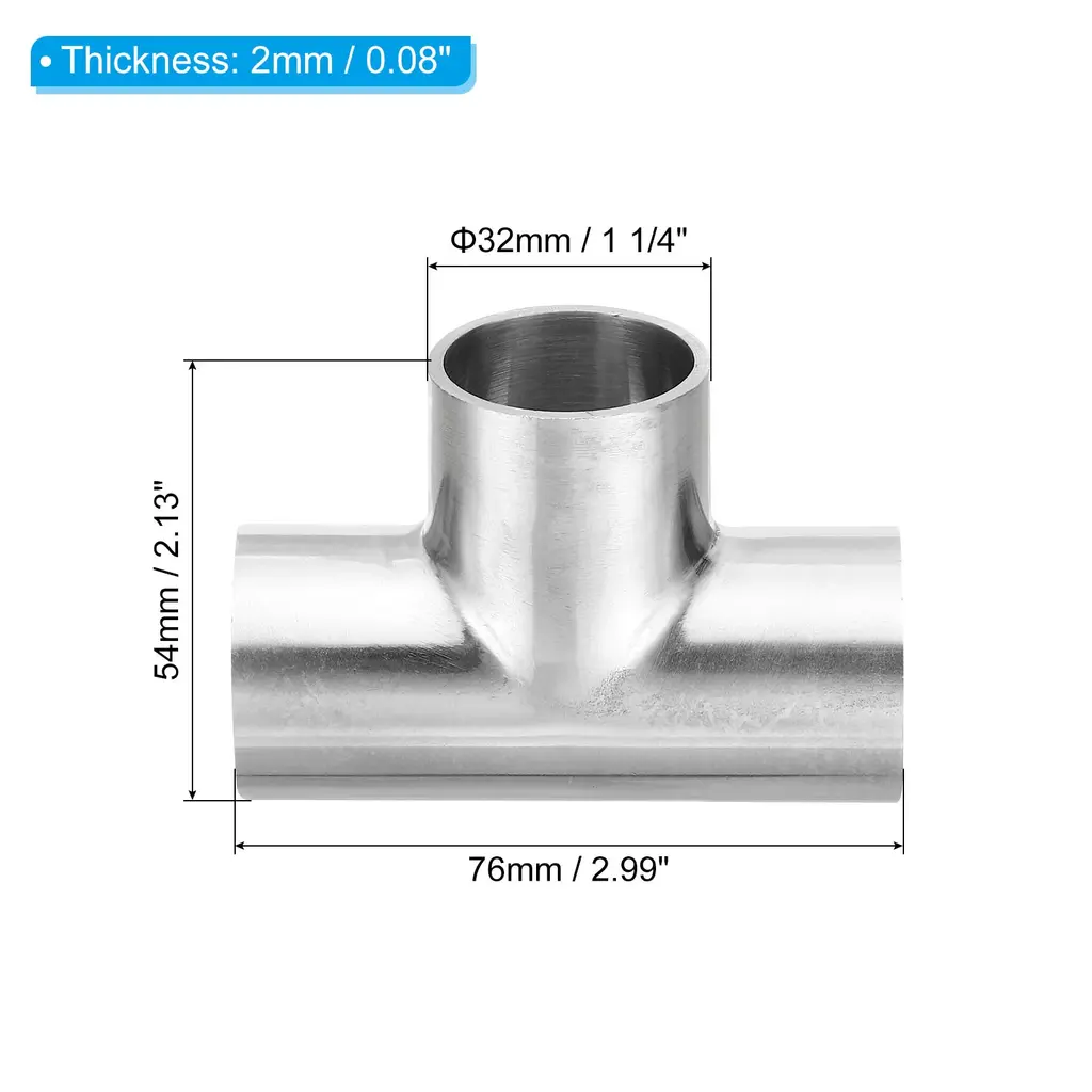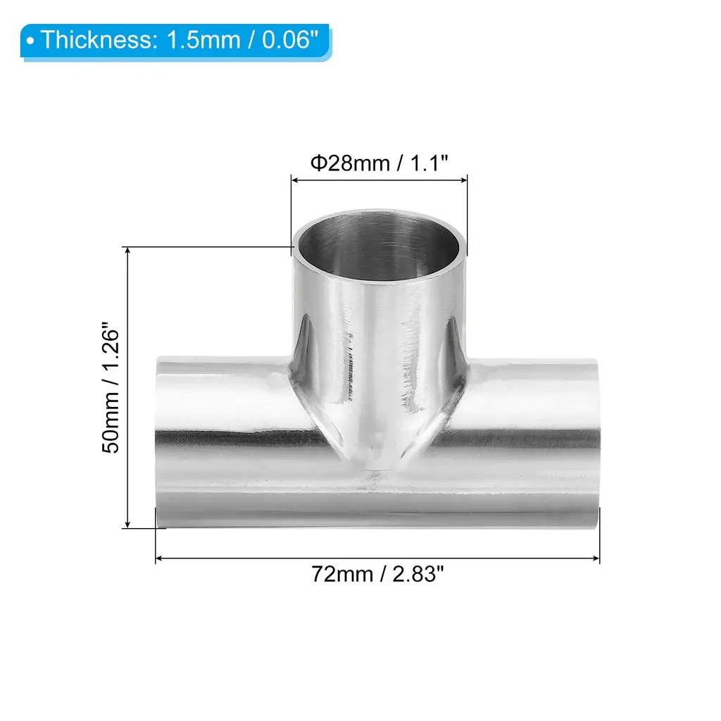 This T joint duct splitter can be applied to various industries, such as HVAC, refrigeration, automotive, mechanical, food, dairy, wine and beverage etc. It's polished, widely used in highly clean and purity piping system. It is an universal pneumatic or hydraulic fittings to connect pipes, tubes, and hoses.Specification:Color: SilverMaterial: 304 Stainless SteelLength: 52mmWidth: 37mmOuter Diameter: 14mm / 0.55 inchThickness: 1.5 mm / 0.06 inchPacking List: 1 Pcs x T Joint Duct SplitterAdvantage:The 3 way duct splitter connector is made of 304 stainless steel, which has good heat resistance performance, anti-oxidation, anti-rust, durable and corrosion-resistant, and has high hardness. 304 stainless steel is pollution-free. It is mirror polished and has a smooth surface. It's precisely sized, so don't worry about not fitting.Instruction: Clean the pipe connection area to ensure that the surface is free of dust, grease, or other debris. This T shape metal exhaust pipe splitter is normally used for pipe connection through welding.NOTE: Need to confirm the pipe size before ordering.