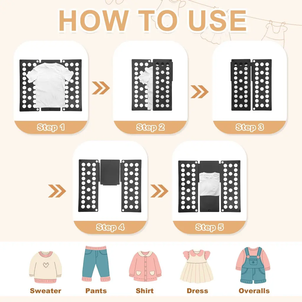 Description:Material: The shirt folder is constructed from reinforced PP material, ensuring flexibility, resistance to breakage, and durability for long-lasting use.Effortless Efficiency: The shirt folder board simplifies the process of folding clothes, allowing for a more organized and clutter-free wardrobe. Say goodbye to wrinkles and closet chaos.Feature: The folder laundry has a micro-textured surface to prevent fabrics from slipping and features large holes in the panels that act as ventilation, helping to prevent static attraction when folding and reducing wrinkles. Application: Suitable for home use in closets and drawers for organized storage. The T-shirt folder is designed to handle various clothing items, including T-shirts, dress shirts, shorts, jeans, pants, pajamas, and even towelsSpecification:Material: PPTotal Size:48 x 40 x 0.2 cm/ 18.9 x 15.7 x 0.08 inches (L*W*Thick)Folding Size: 20 x 15 cm/7.9 x 5.9 inchesPackage Content: 1 x Shirt Folder Board