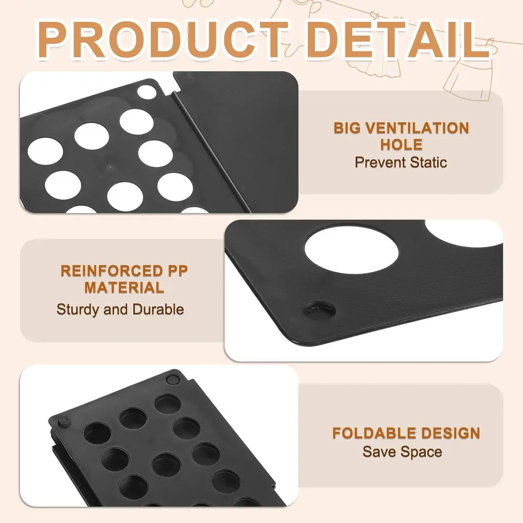 Description:Material: The shirt folder is constructed from reinforced PP material, ensuring flexibility, resistance to breakage, and durability for long-lasting use.Effortless Efficiency: The shirt folder board simplifies the process of folding clothes, allowing for a more organized and clutter-free wardrobe. Say goodbye to wrinkles and closet chaos.Feature: The folder laundry has a micro-textured surface to prevent fabrics from slipping and features large holes in the panels that act as ventilation, helping to prevent static attraction when folding and reducing wrinkles. Application: Suitable for home use in closets and drawers for organized storage. The T-shirt folder is designed to handle various clothing items, including T-shirts, dress shirts, shorts, jeans, pants, pajamas, and even towelsSpecification:Material: PPTotal Size:48 x 40 x 0.2 cm/ 18.9 x 15.7 x 0.08 inches (L*W*Thick)Folding Size: 20 x 15 cm/7.9 x 5.9 inchesPackage Content: 1 x Shirt Folder Board
