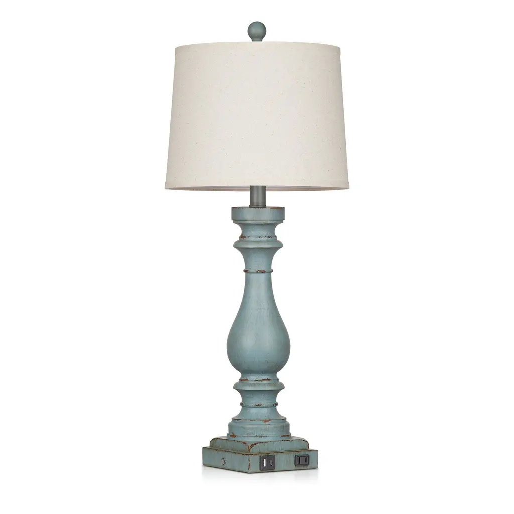 Table Lamp Blue Resin Drop Style Tilted Shade 3-Way Dimming Touch Switch Usb Type-C Charging Ports Ac Outlet No Strobe(set Of 2) - 12.5'' X 12.5'' X 28.5'' (L X W X H) - Blue
