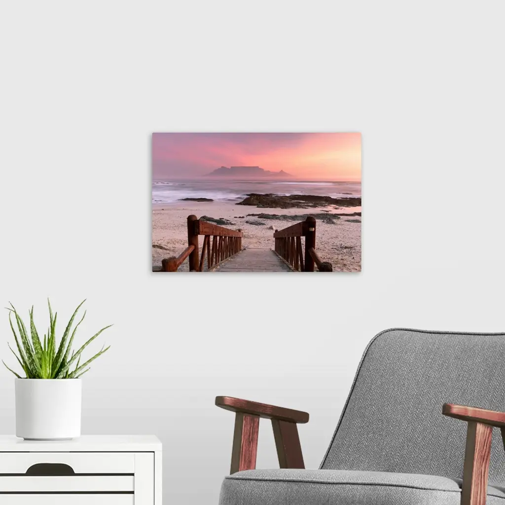 View of Table Mountain from Bloubergstrand at sunset, Cape Town, Western Cape, South Africa
