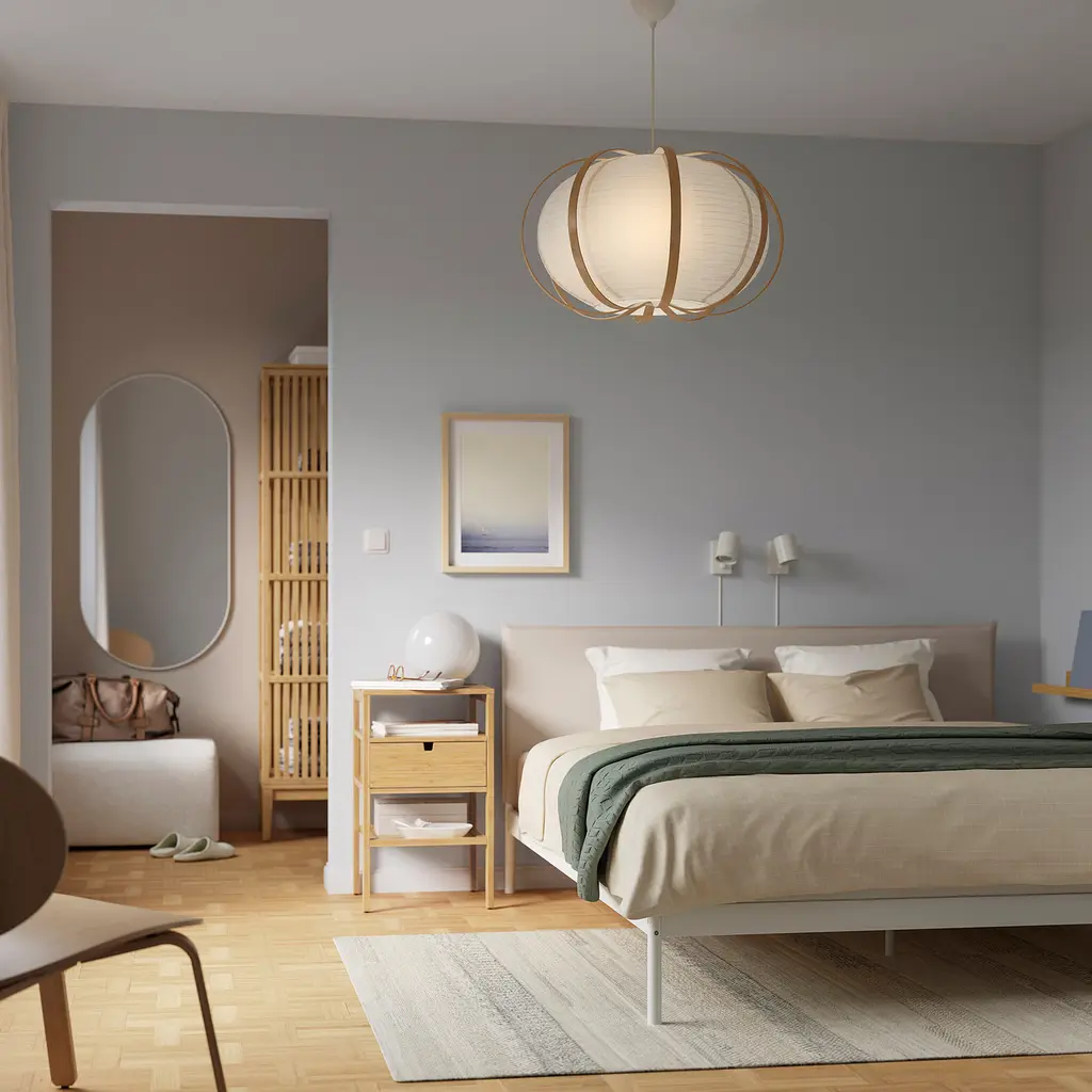 TAGGTOFS / HAVSDJUP Pendant lamp - white bamboo 26 3/8 ". Easy to take home since the lampshade comes in a flat-pack. You can create a soft, cozy atmosphere in your home with a paper lamp that spreads diffused and decorative light. Light bulb sold separately. IKEA recommends LED bulb E26.