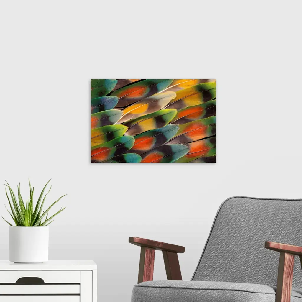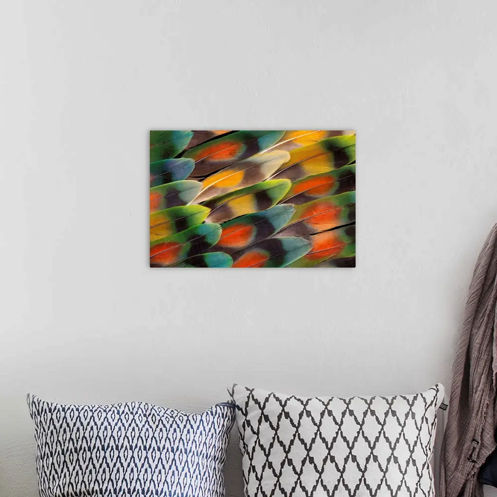 Tail feather design and pattern of many varities of Lovebirds photographed in Sammamish, WA