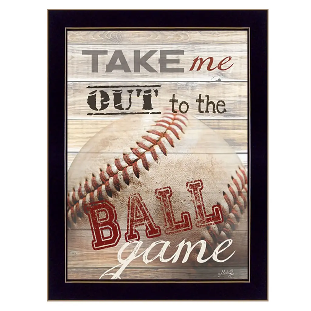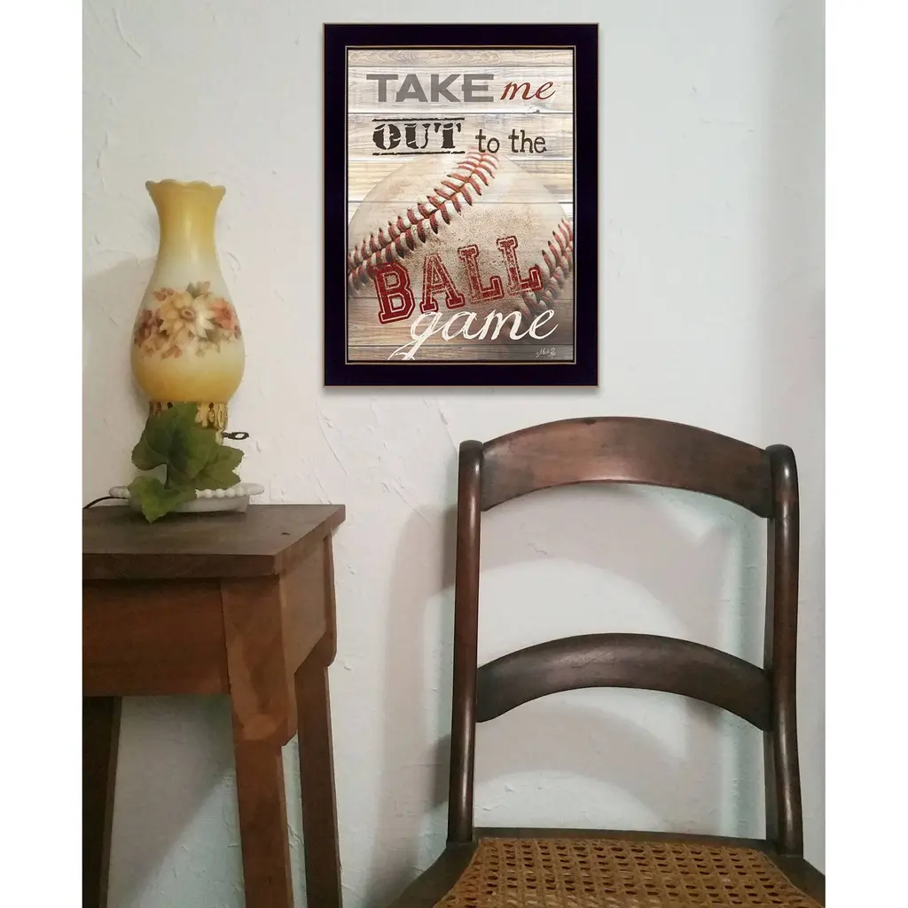 Unique and decorative, this take me out to the ball game 3 black framed print baseball wall art will leave a lasting impression. This print is a visual artistic expression that allows you to decorate your space in style. Reproduced for you on wood, this hanging decorative accent will be a trendy and fashionable way to dress your walls in a rustic and modern farmhouse vibe. Adding this hanging wall art to your space to make your room feel more finished and attractive. Utilize this opportunity to create a focal point in the room with this fabulous wall decor option. 18" H x 14" W x 1" D