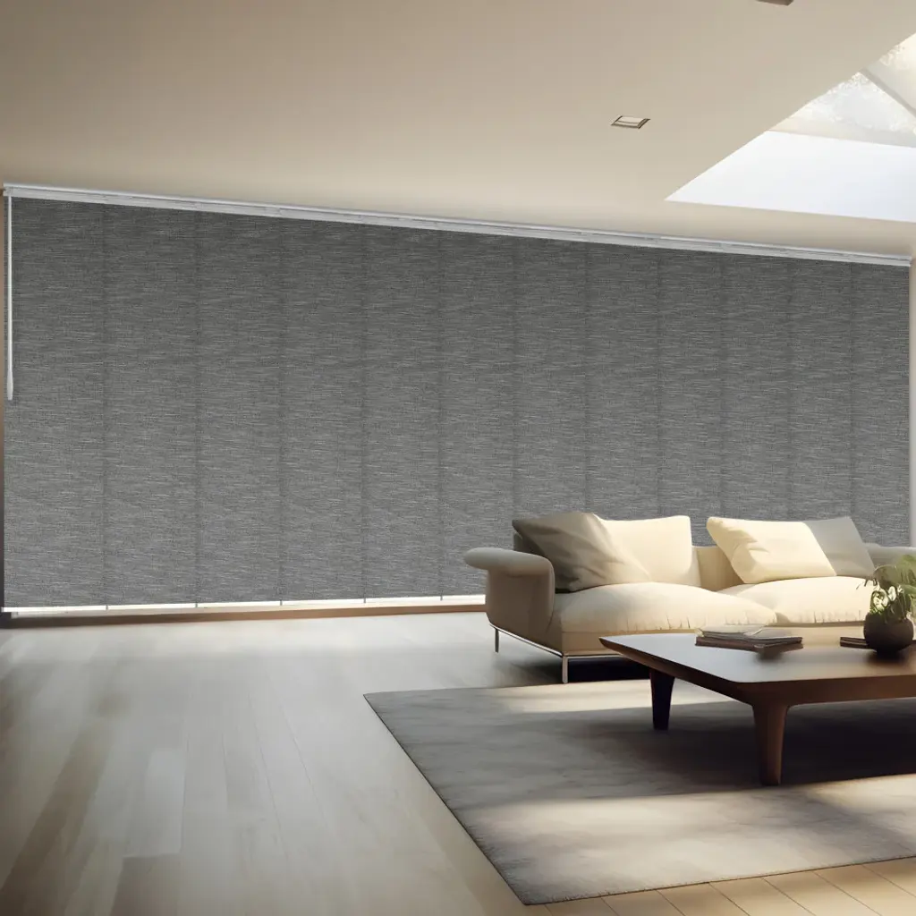 Central Design Products is pleased to introduce a new innovative panel track that offers easy 2-way installation, adding an alluring style and refined touch to your home decor. The double rail design of the track is sleek, compact, and reduces the overall footprint and weight of the installation, eliminating bulky, intrusive window treatments. Adjusting the panel height is a breeze � simply trim the panel, re-attach the liner, and install the panel weight. Detailed instructions are included.The panel track also features a patented slider design, made with aluminum and fitted with bearings that allow for durable and smooth operation. The sliders are stacked closer together than conventional panel tracks, reducing light bleed coming from the gaps between panels. This track has endless uses from dividing rooms, garages, offices, and closets to decorating windows and patios. Available in smaller sizes including 3, 4, 5, 6, and 7 panels. Extends from 140-260� wide. Each panel measures 23.5" wide and 91.5" tall, with a total installation height of 94" (includes the 2.5" rail track). The track can be wall or ceiling mounted. The panels can stack on the left or the right. The clearance from the wall is extendable from 1.25� to 3.25� and projection from the wall is extendable from 3� to 4.25�. Tahla panel is made from 70% Polyester 30% Acrylic, with a blackout shade.