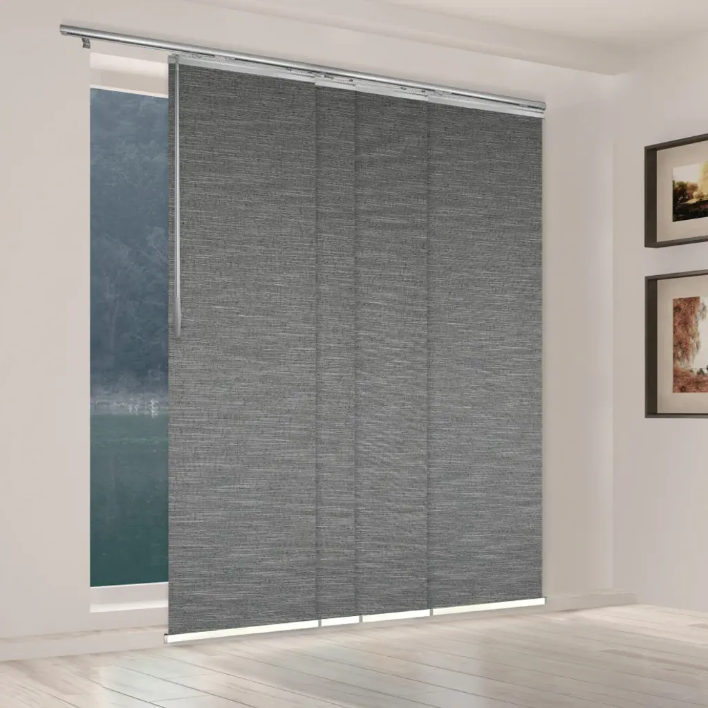 Central Design Products is pleased to introduce a new innovative panel track that offers easy 2-way installation, adding an alluring style and refined touch to your home decor. The single rail design of the track is sleek, compact, and reduces the overall footprint and weight of the installation, eliminating bulky, intrusive window treatments. Adjusting the panel height is a breeze � simply trim the panel, re-attach the liner, and install the panel weight. Detailed instructions are included.The panel track also features a patented slider design, made with aluminum and fitted with bearings that allow for durable and smooth operation. The sliders are stacked closer together than conventional panel tracks, reducing light bleed coming from the gaps between panels. This track has endless uses from dividing rooms, garages, offices, and closets to decorating windows and patios. Available in larger sizes including 8, 10, and 12 panels. Extends from 48-88� wide. Each panel measures 23.5" wide and 91.5" tall, with a total installation height of 94" (includes the 2.5" rail track). The track can be wall or ceiling mounted. The panels can stack on the left or the right. The clearance from the wall is extendable from 1.25� to 3.25� and projection from the wall is extendable from 3� to 4.25�. Tahla panel is made from 70% Polyester 30% Acrylic, with a blackout shade.
