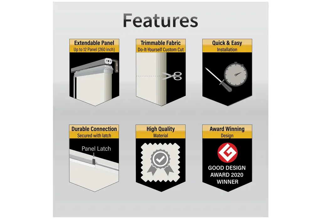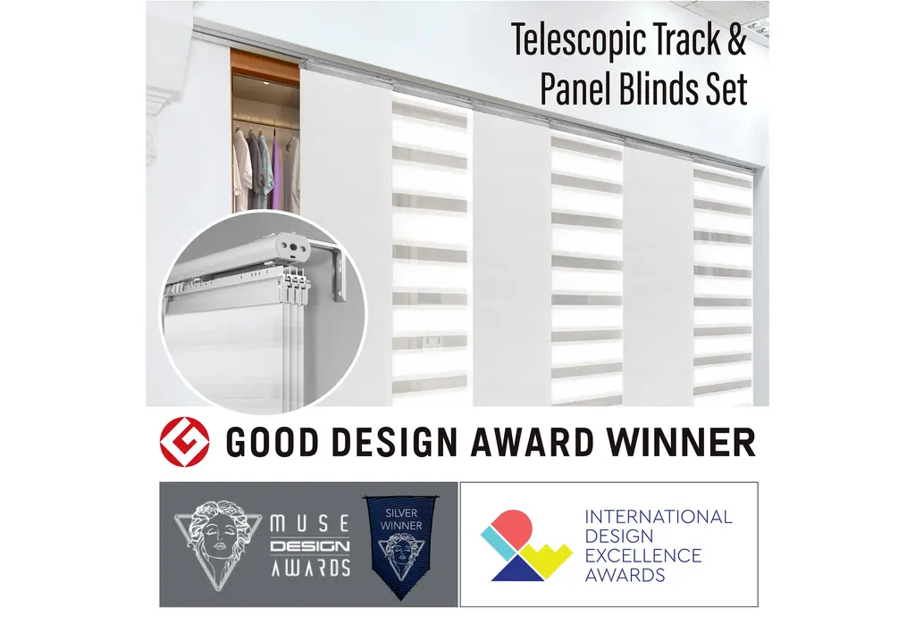 Central Design Products is pleased to introduce a new innovative panel track that offers easy 2-way installation, adding an alluring style and refined touch to your home decor. The single rail design of the track is sleek, compact, and reduces the overall footprint and weight of the installation, eliminating bulky, intrusive window treatments. Adjusting the panel height is a breeze � simply trim the panel, re-attach the liner, and install the panel weight. Detailed instructions are included.The panel track also features a patented slider design, made with aluminum and fitted with bearings that allow for durable and smooth operation. The sliders are stacked closer together than conventional panel tracks, reducing light bleed coming from the gaps between panels. This track has endless uses from dividing rooms, garages, offices, and closets to decorating windows and patios. Available in larger sizes including 8, 10, and 12 panels.Extends from 110-153� wide.Each panel measures 23.5" wide and 116" tall, with a total installation height of 118.5" (includes the 2.5" rail track).The track can be wall or ceiling mounted.The panels can stack on the left or the right.The clearance from the wall is extendable from 1.25� to 3.25� and projection from the wall is extendable from 3� to 4.25�.Tahla panel is made from 70% Polyester 30% Acrylic, with a blackout shade.