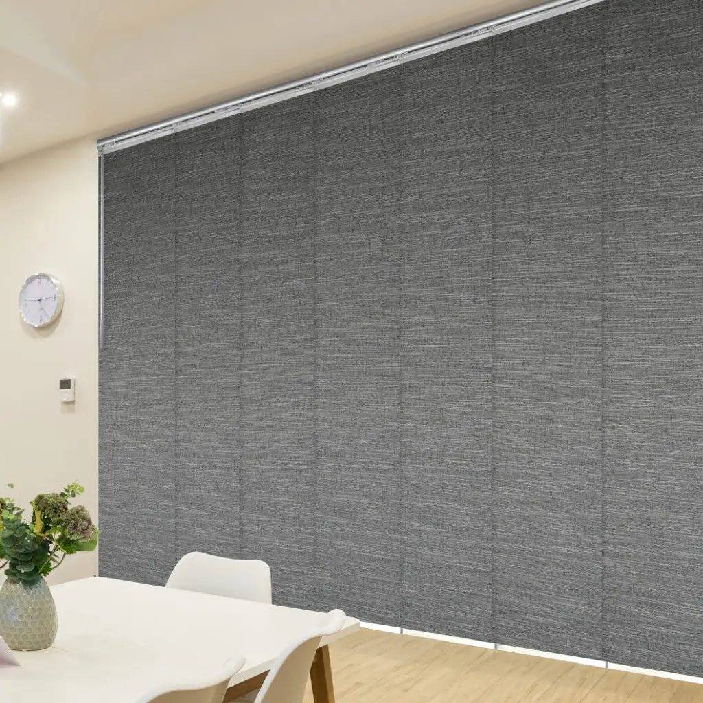Central Design Products is pleased to introduce a new innovative panel track that offers easy 2-way installation, adding an alluring style and refined touch to your home decor. The single rail design of the track is sleek, compact, and reduces the overall footprint and weight of the installation, eliminating bulky, intrusive window treatments. Adjusting the panel height is a breeze � simply trim the panel, re-attach the liner, and install the panel weight. Detailed instructions are included.The panel track also features a patented slider design, made with aluminum and fitted with bearings that allow for durable and smooth operation. The sliders are stacked closer together than conventional panel tracks, reducing light bleed coming from the gaps between panels. This track has endless uses from dividing rooms, garages, offices, and closets to decorating windows and patios. Available in larger sizes including 8, 10, and 12 panels. Extends from 110-153� wide. Each panel measures 23.5" wide and 116" tall, with a total installation height of 118.5" (includes the 2.5" rail track). The track can be wall or ceiling mounted. The panels can stack on the left or the right. The clearance from the wall is extendable from 1.25� to 3.25� and projection from the wall is extendable from 3� to 4.25�. Tahla panel is made from 70% Polyester 30% Acrylic, with a blackout shade.