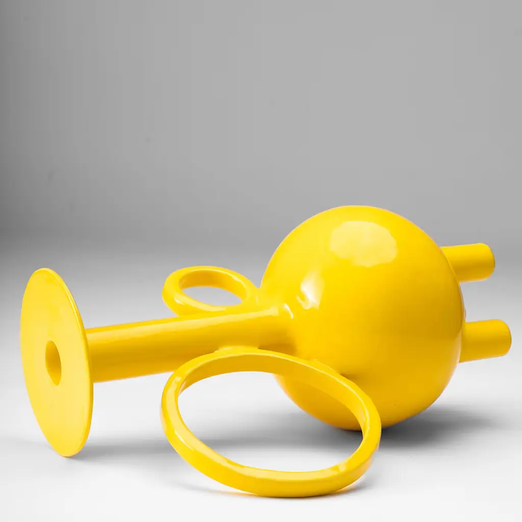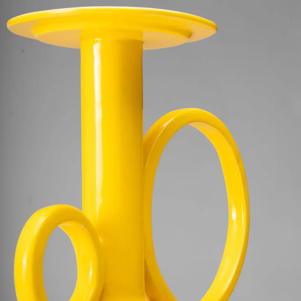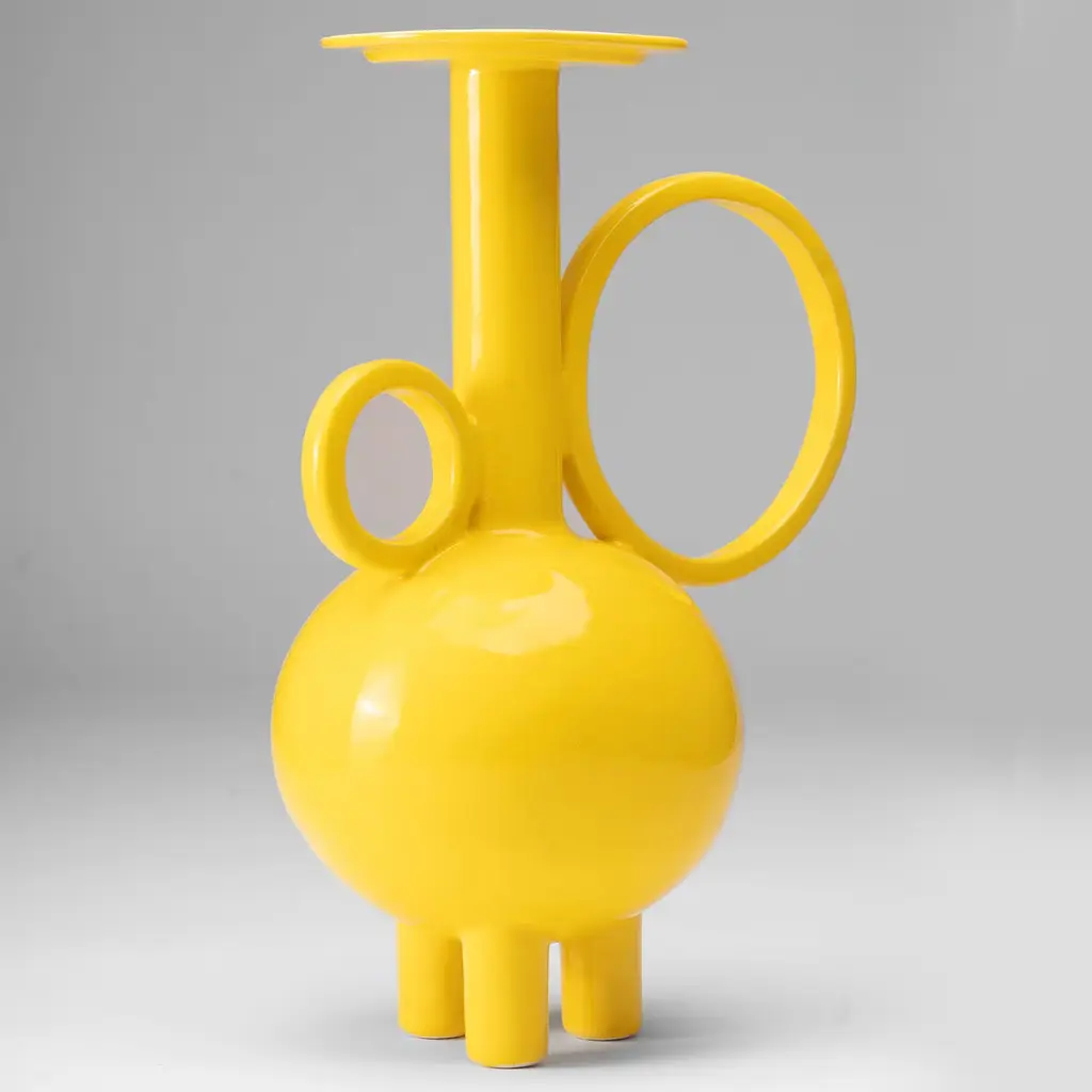 The Tall Algoritmo amphora is a remarkable piece crafted from quality ceramics, featuring a vibrant yellow glossy finish that adds a striking touch to any décor. Standing tall, this vessel embodies a unique design inspired by the concept of continuous evolution, representing a journey of constant transformation. The amphora is meticulously created using a white terracotta base, first fired at a "biscotto" stage and then glazed with lead-free paints before undergoing a second high-temperature firing. This process not only enhances its durability but also elevates its aesthetic appeal. Whether used for decorative purposes or as a functional vase, this piece combines elegance with individuality. Available in a variety of color options, the Amphora caters to diverse tastes and design preferences, making it a versatile choice for enhancing interior spaces. Contact the Concierge for further information.