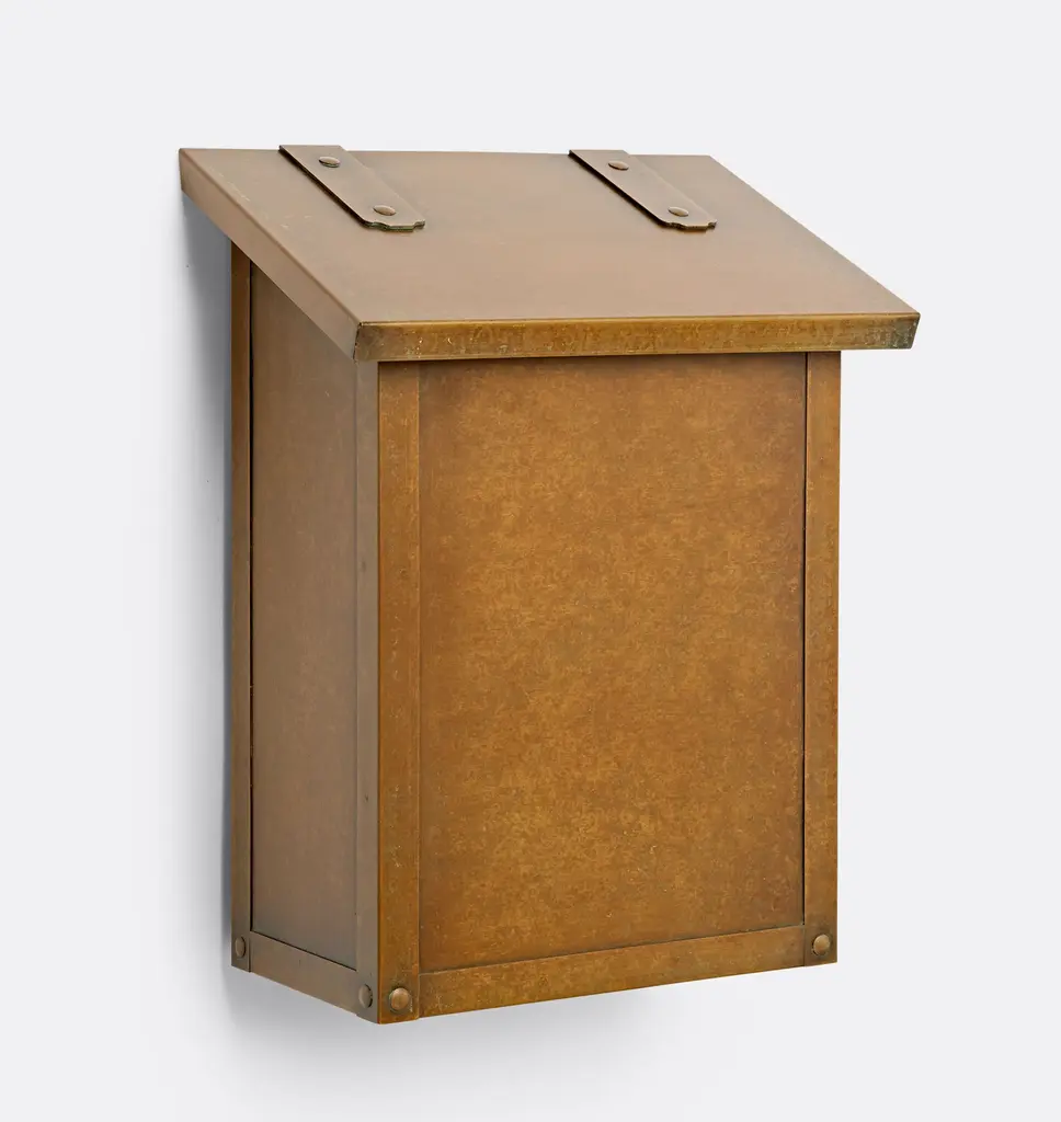Amplify your curb appeal with our Wide Classic Mailbox. Assembled in USA with solid brass construction, it's easily mounted in any entry or front porch space. Crafted with a hand-applied finish and traditional hinge detail on the lid, it also features an interior rubber bumper to eliminate noise when closing. Corner rivets complete the design and provide a handcrafted look.