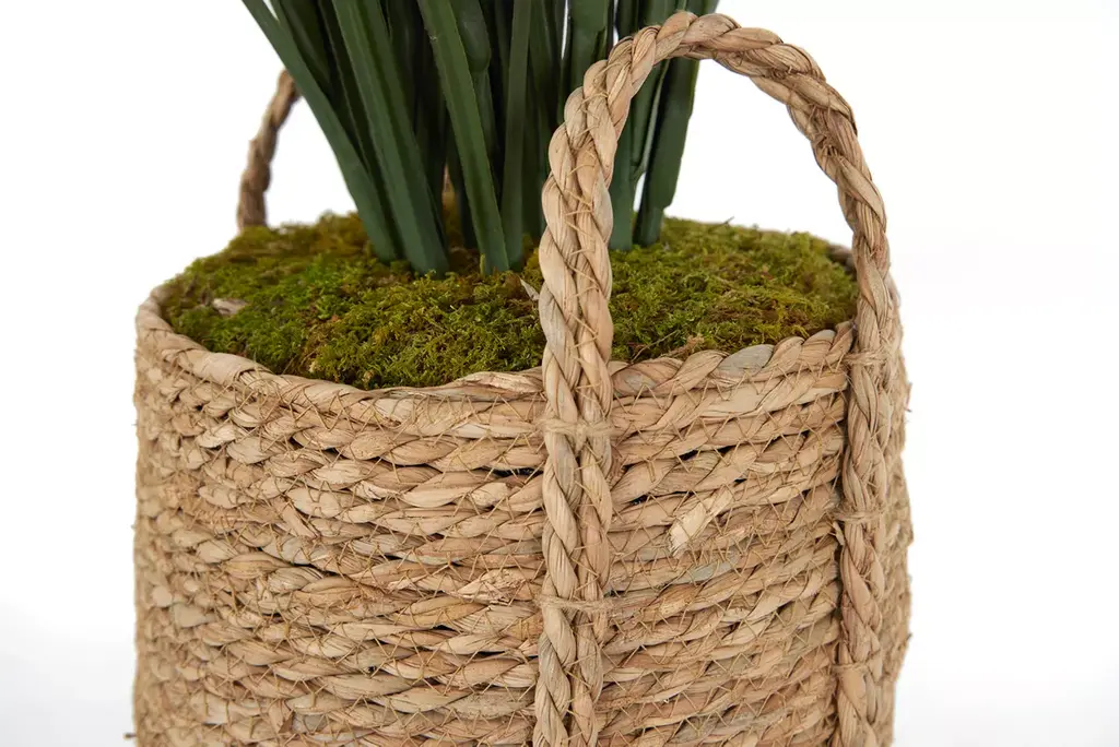 Our tall grass will bring graceful texture to your entryway or home office with varying green fronds tucked neatly into a natural rattan basket. Moss surrounds the base and provides a finished look to the overall aesthetic.