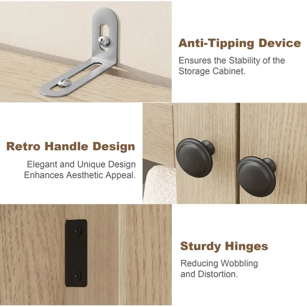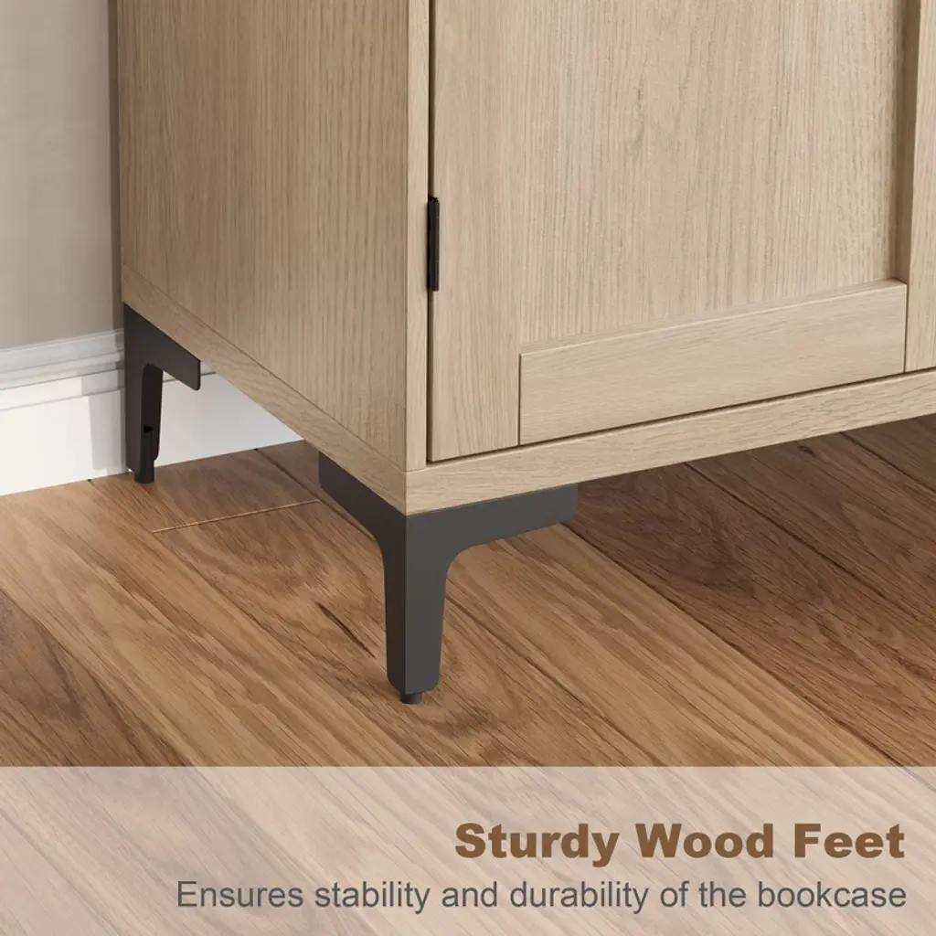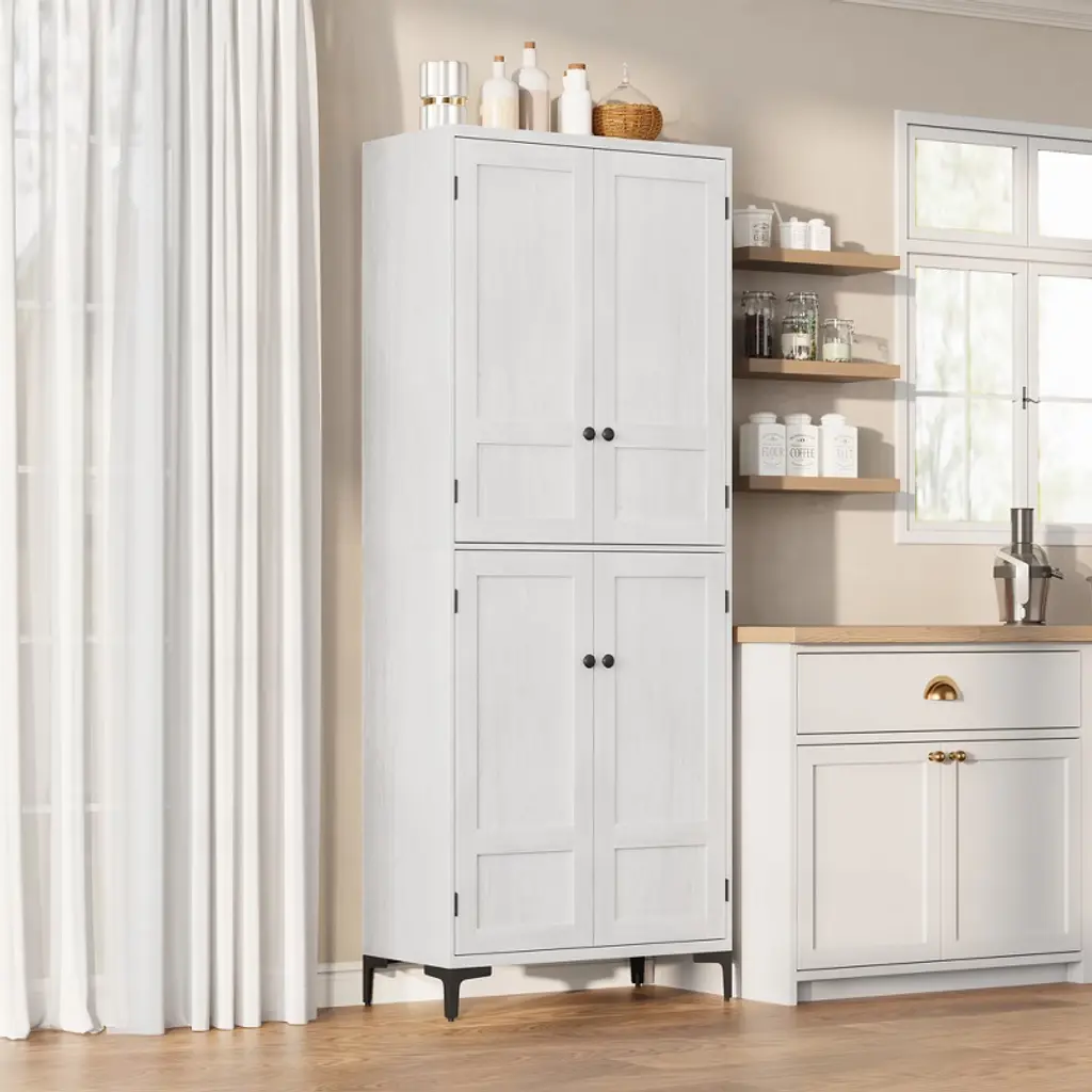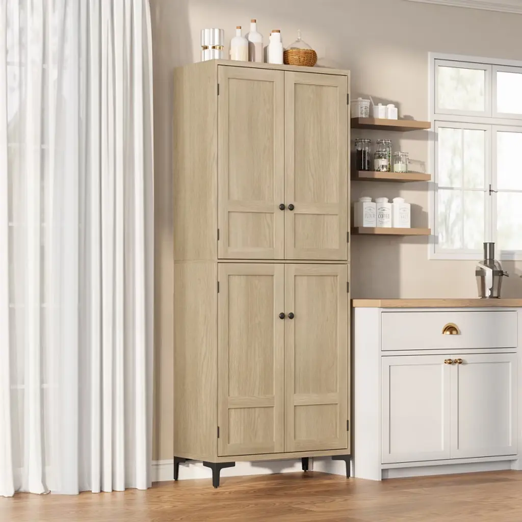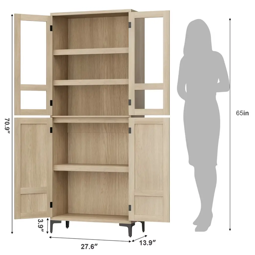 Tall Kitchen Pantry Cabinet With Glass Doors, Food Storage Cabinet With 4 Doors 5 Tier Adjustable Shelves For Kitchen, Bathroom (Pear Wood)
