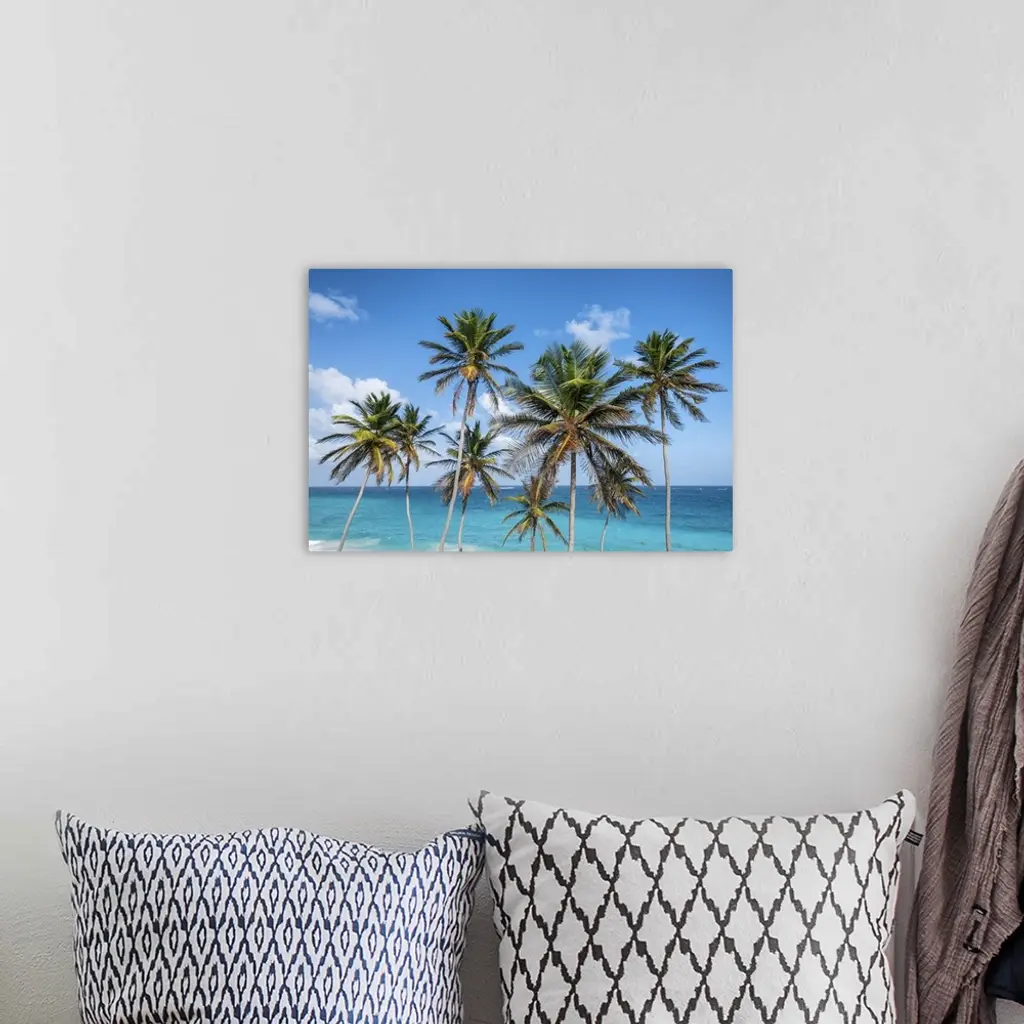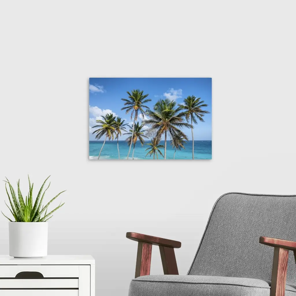 Tall Palm Trees And Turquoise Sea, Barbados Island, West Indies